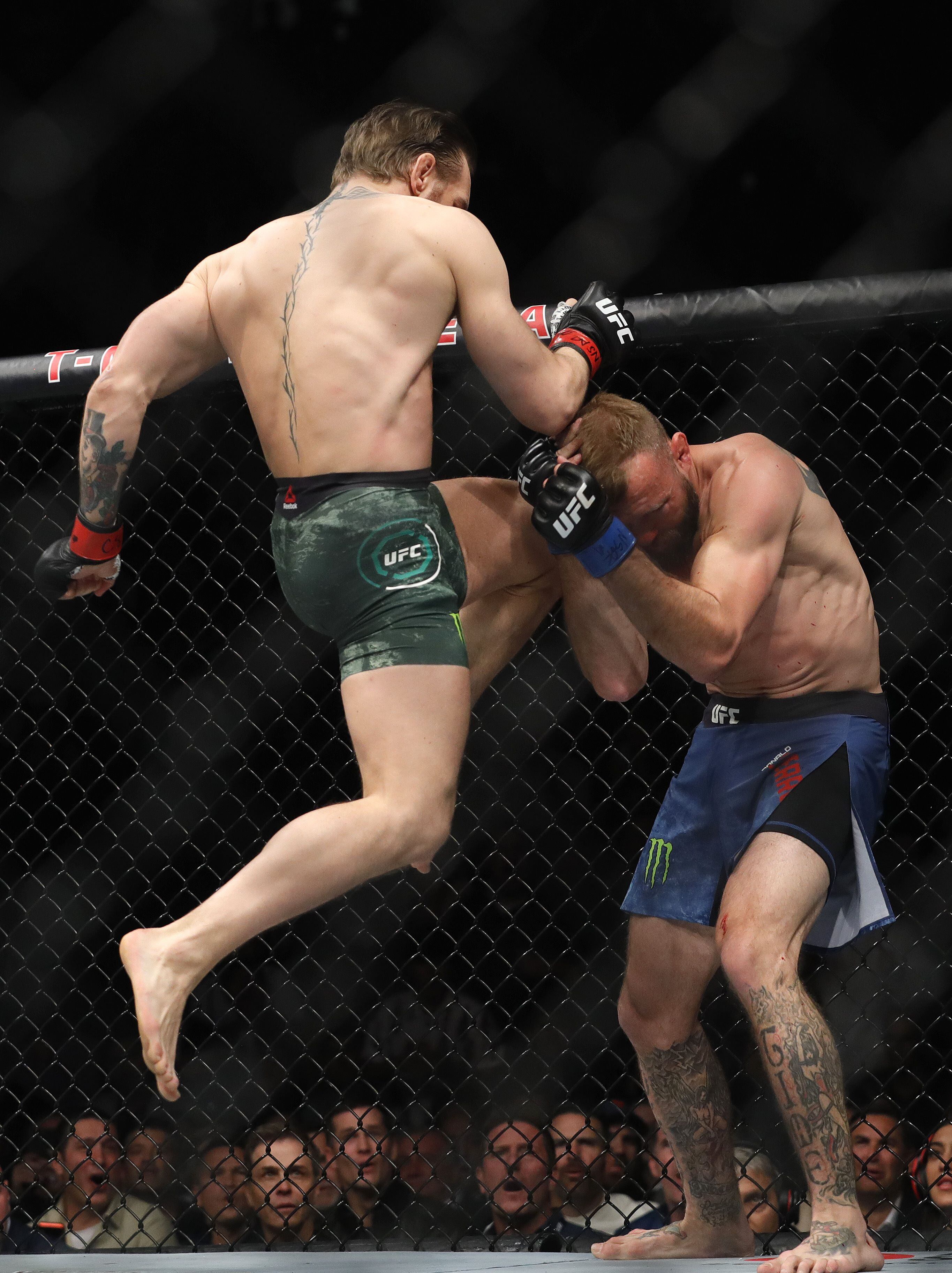 Parecía un inicio errático, pero el irlandés tenía un as bajo la manga: le metió un rodillazo en la cara y luego ejecutó cuatro golpes con el hombro izquierdo sobre la nariz del norteamericano.