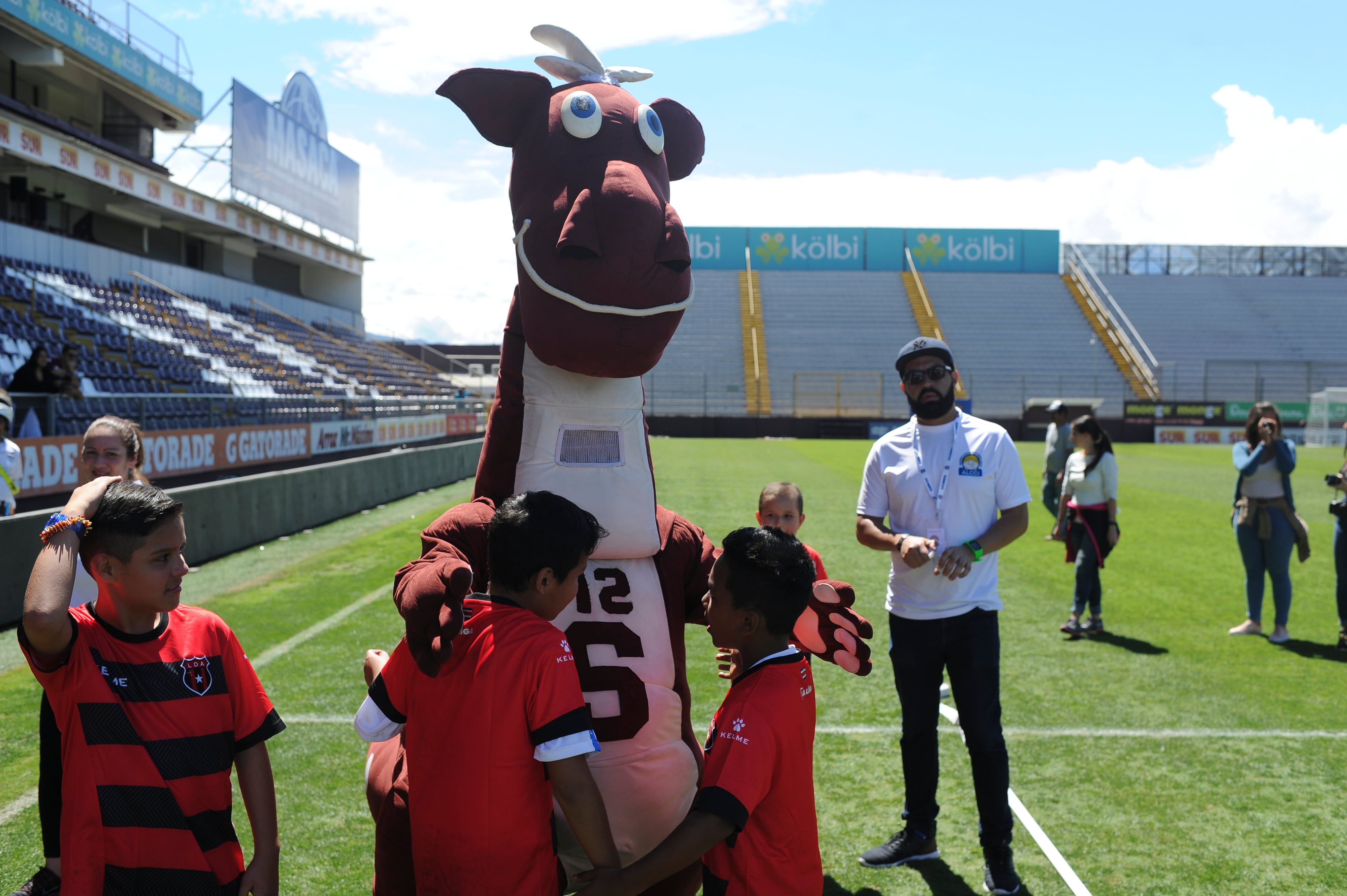 Uno de los que estaba más contento con la mejenga era José Francisco Porras, secretario técnico del club, quien recibió a los niños desde la puerta del estadio, los llevó a la cancha y nos los dejó solos en ningún momento.