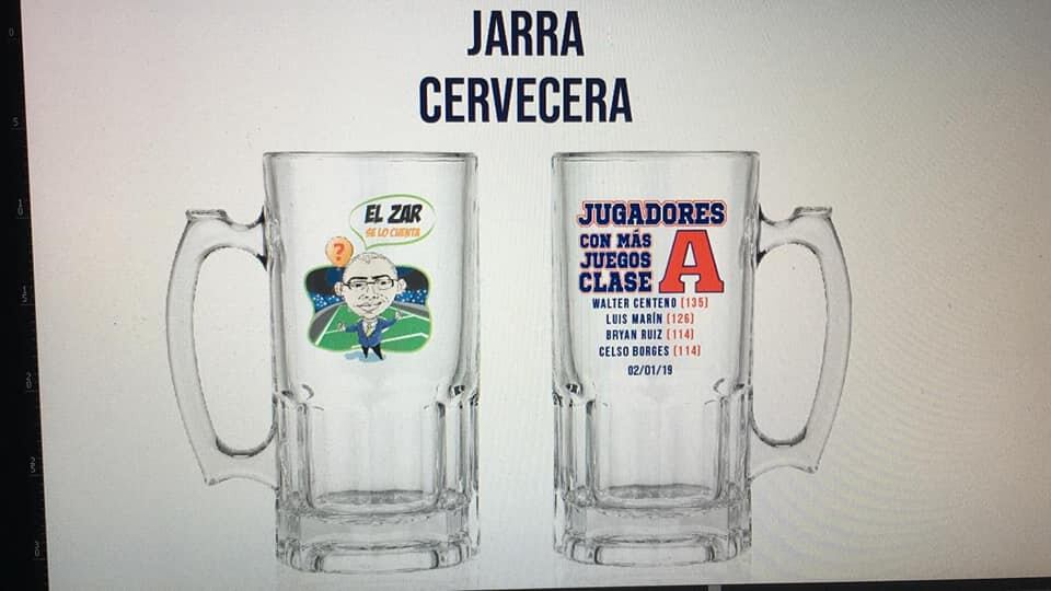 El dato que se pone en el artículo es el que usted quiere, como la cantidad de campeonatos, de goles de equis jugador, una fecha especial, lo que se le ocurra, nada más lo pide por la página de Facebook “El Zar de las estadísticas Gerardo Coto Cover”, se pone de acuerdo con el periodista y listo. Las camisetas valen ¢8500 y las jarras cerveceras, ¢7500.