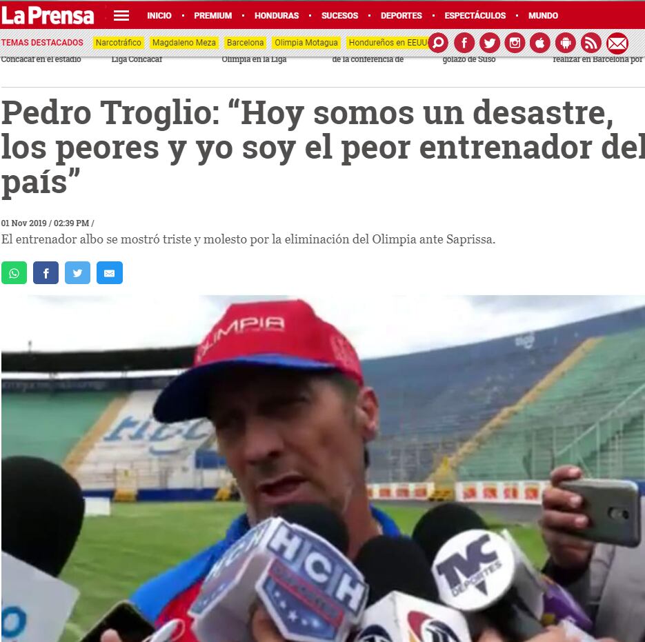 “En una mañana gris, el elenco olimpista llegó a Tegucigalpa luego de haber caído 4 a 1 la noche del jueves en San José, Costa Rica, a manos del Saprissa”, indicó el medio.