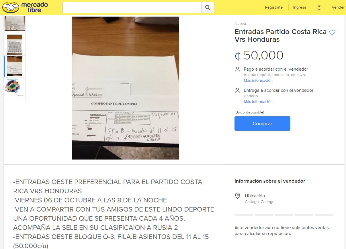 Este es el caso de la página web de compra y venta mercadolibre.com, a través de la cual algunas personas ya pusieron a disposición tiquetes para ver el partido y los venden hasta por el doble del precio original.