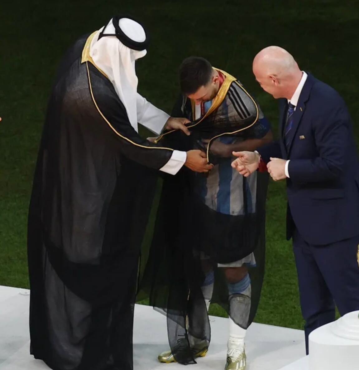 Pero hubo un momento exacto que generó dudas a nivel mundial, y fue cuando el emir de Qatar, Tamim bin Hamad Al Thani, colocó una especie de capa al astro argentino previo a levantar la Copa del Mundo.