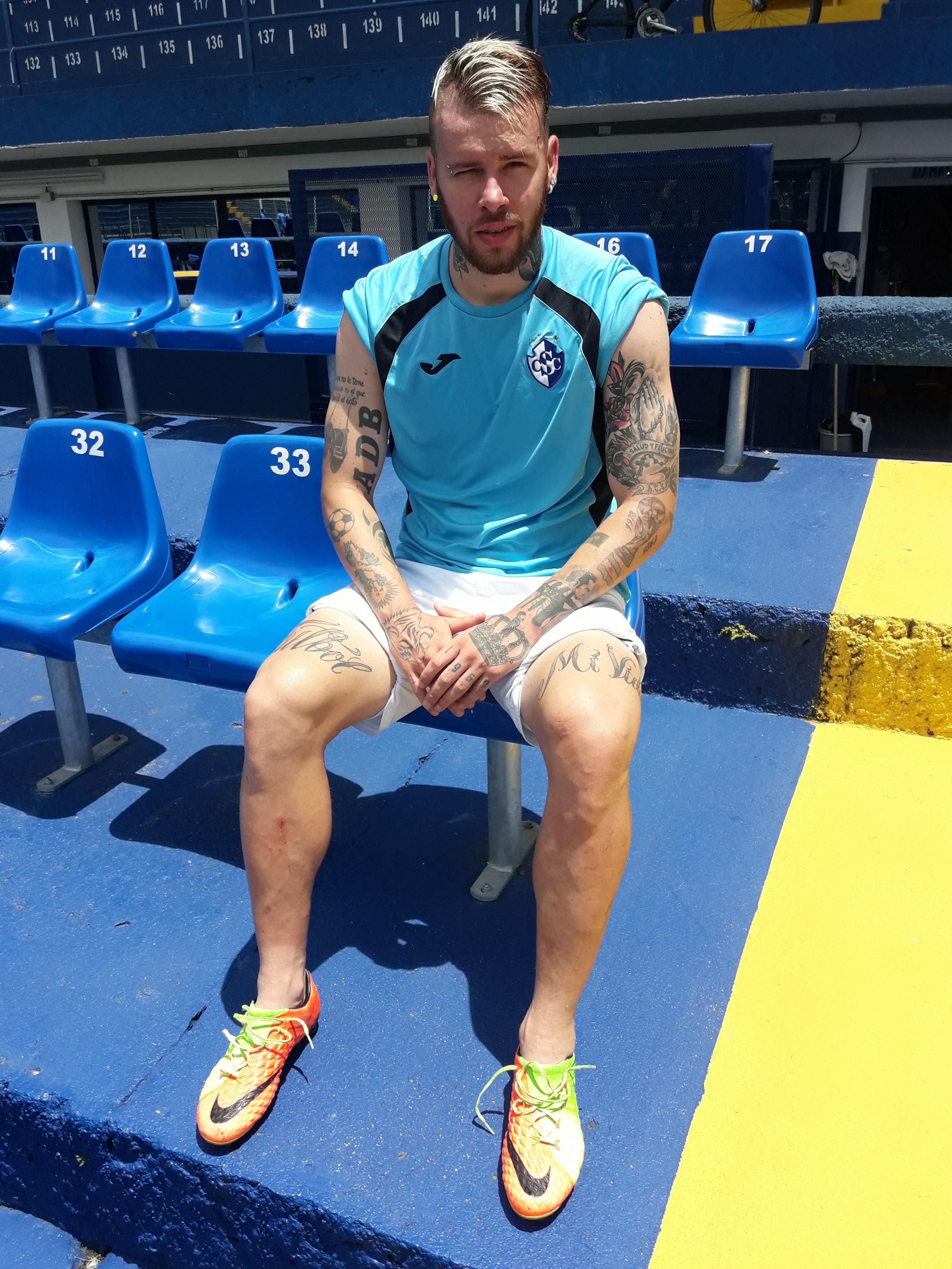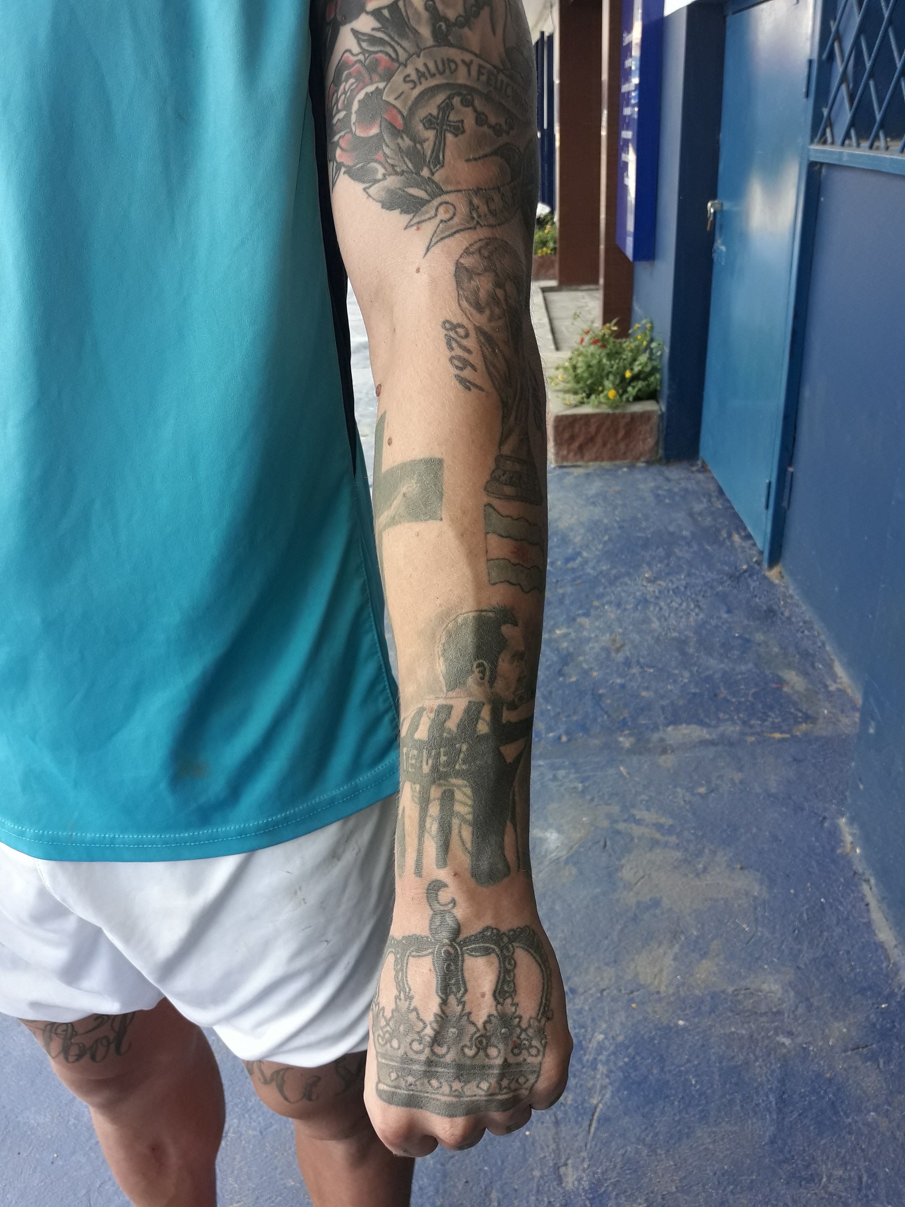 "Yo me hice mi primer tatuaje a los 17 años, mi idea era hacerme uno solo nada más, pero a los 18 me hice otro y después me terminó gustando y por eso me hice casi todo el brazo", comentó el delantero del Cartaginés Hernán Fener, quien ya va por los 24 tattoos.