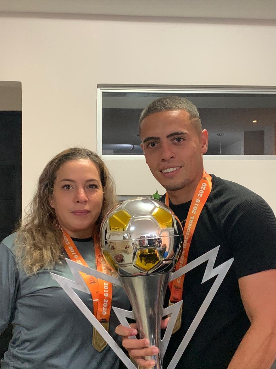 Cuando los dos Randall Row, padre e hijo, llegaron a su casa, en Belén de Heredia, los esperaba un cartel con los colores del club josefino y la frase “Bienvenidos campeones”. Allí arrancó una íntima celebración familiar, pues no se puede hacer loco debido al coronavirus.