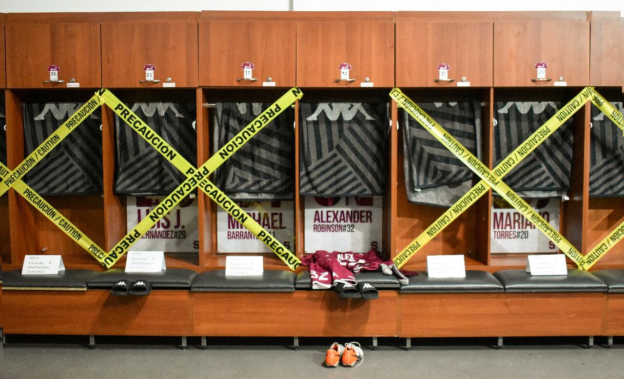 En los camerinos las reglas de distancia no eran jugando, una cinta amarilla bloqueaba el acceso por cada dos espacios y carteles pedían mantener el distanciamiento como medida preventiva.