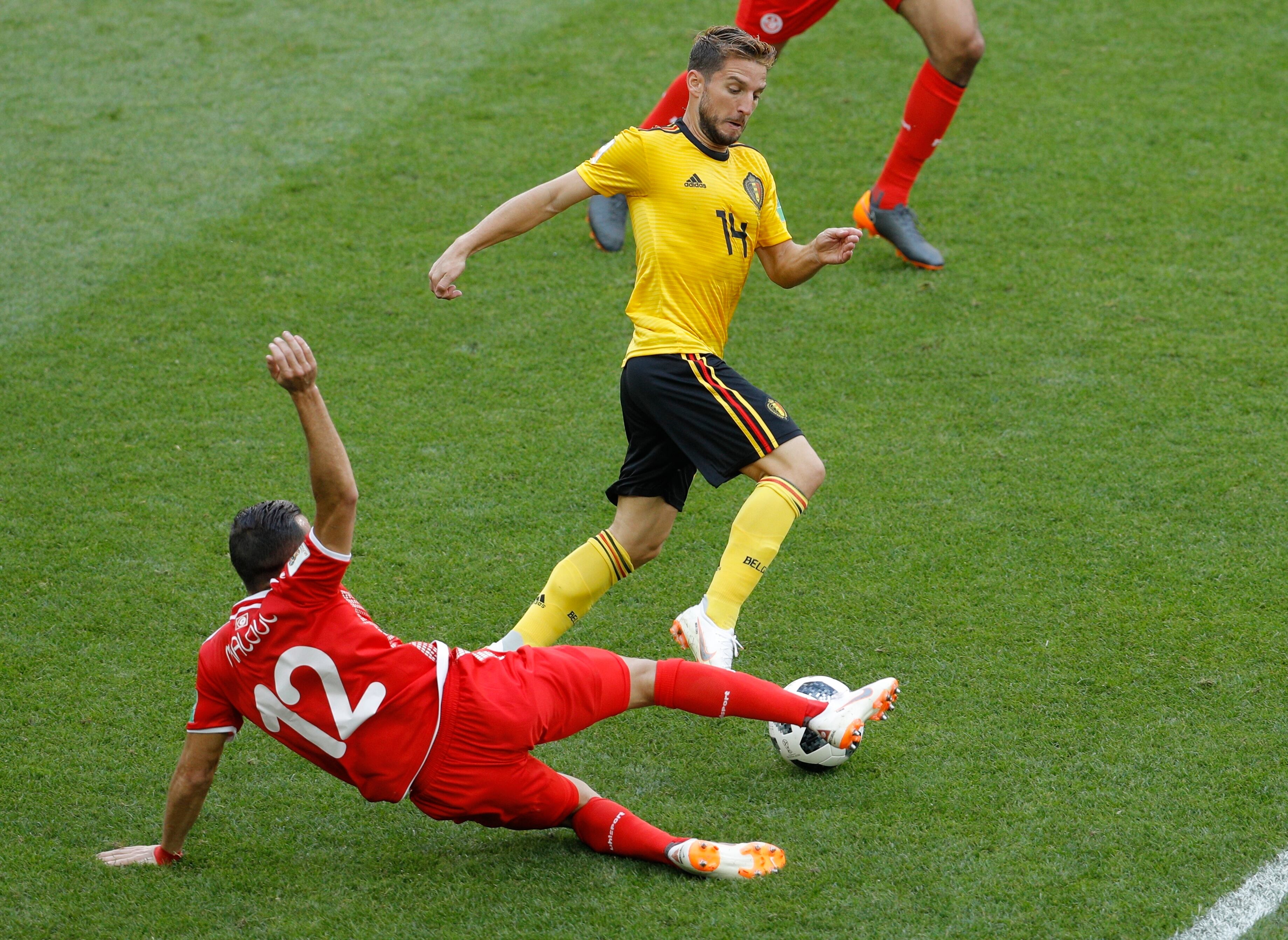 Justo antes del descanso estuvo a punto de marcar, pero no llegó por muy poco a un centro de Kevin de Bruyne (45+2), aunque segundos después sí aprovechó un pase entre líneas de Thomas Meunier para superar a Ben Mustapha picando el balón por encima del arquero (45+3).