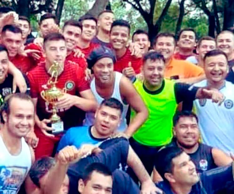 El astro brasileño fue la figura de su equipo en el torneo de fútbol 7 que se disputó en el centro penitenciario Agrupación Especializada de Asunción, en donde está recluido en Paraguay, al anotar cinco goles y dar seis asistencias en la victoria 11-2 (o sea, participó en todos los goles) con la que su equipo se coronó campeón. El trofeo fue el cerdo que seguro se comerán en estos días.