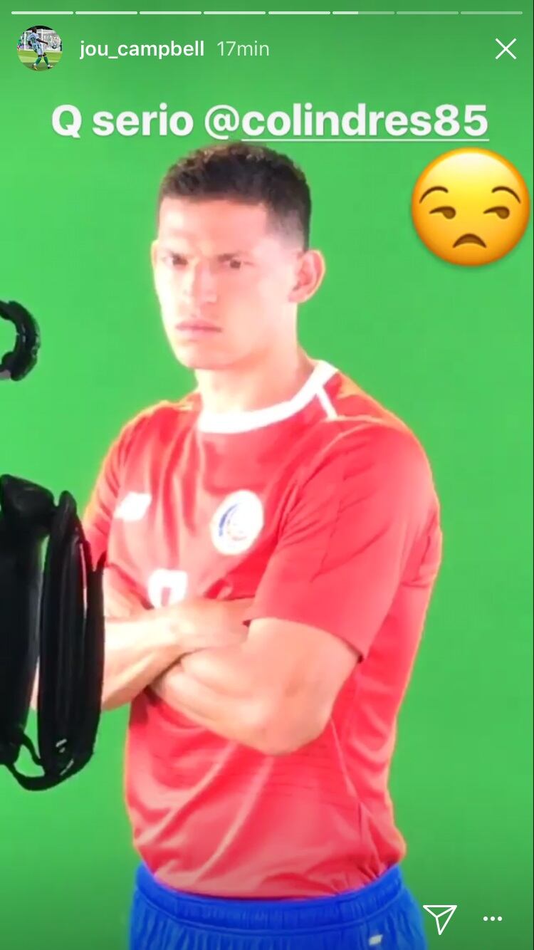 La seriedad de Daniel Colindres da para pasarla bien en todo lado, pues hasta sus compañeros de selección, como Joel Campbell, lo agarran de pato de la fiesta.