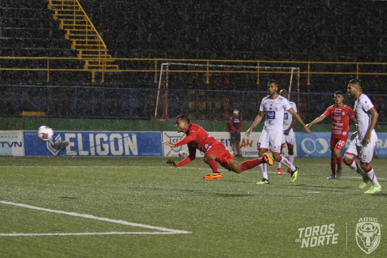 Al primer minuto de juego, el portero Douglas Forvis salió mal y le dejó la bola servida a Aguilar para que anotara el segundo, pero cuando la bola iba para adentro, Juan Diego Madrigal la sacó de forma milagrosa.