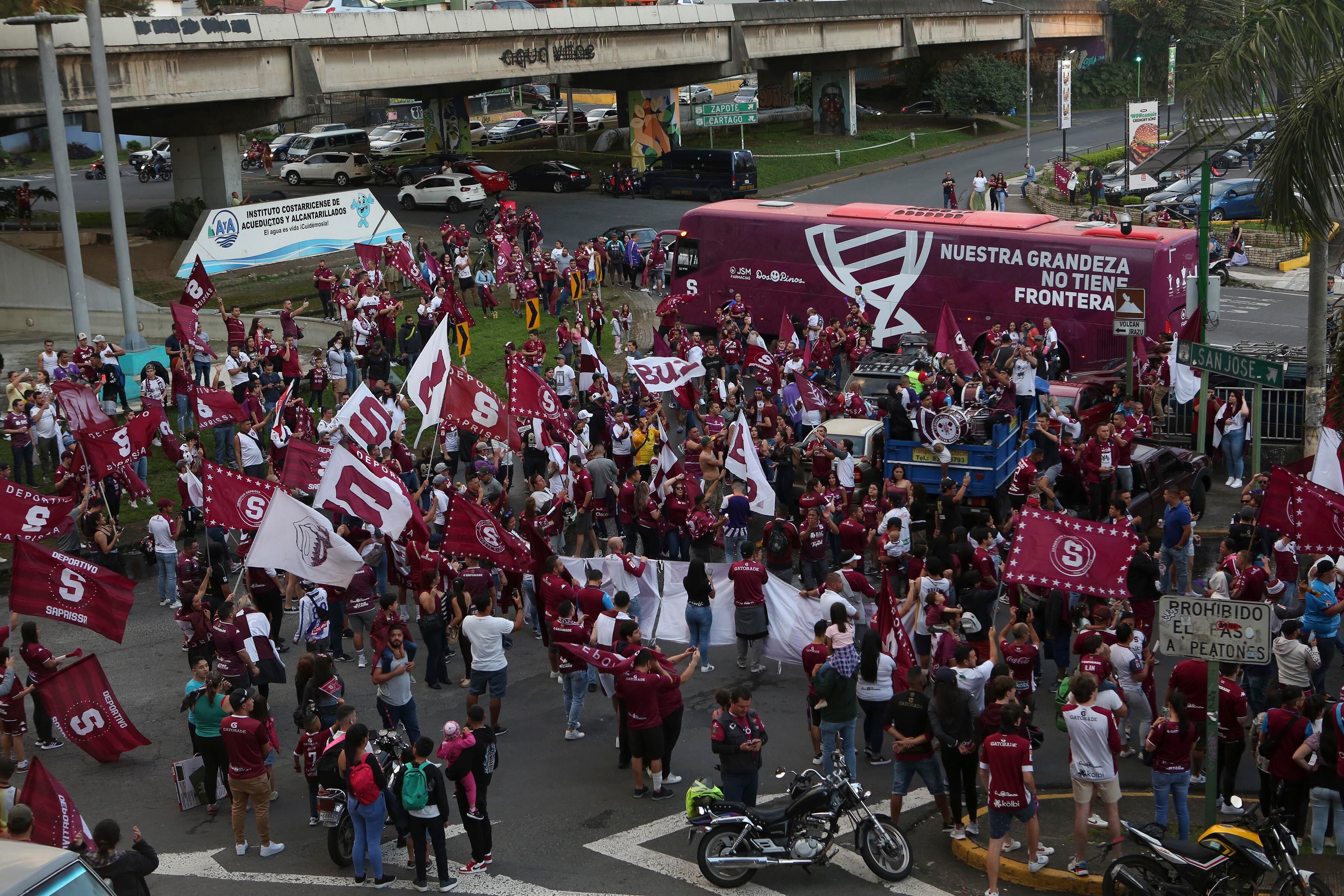 Las principales calles de San Pedro, Guadalupe y Tibás se tiñeron de morado y blanco durante el recorrido con el bus del cuadro morado, al cual los aficionados acompañaran hasta el Ricardo Saprissa, en donde finalizaron las actividades del primer día de la reunión familiar.