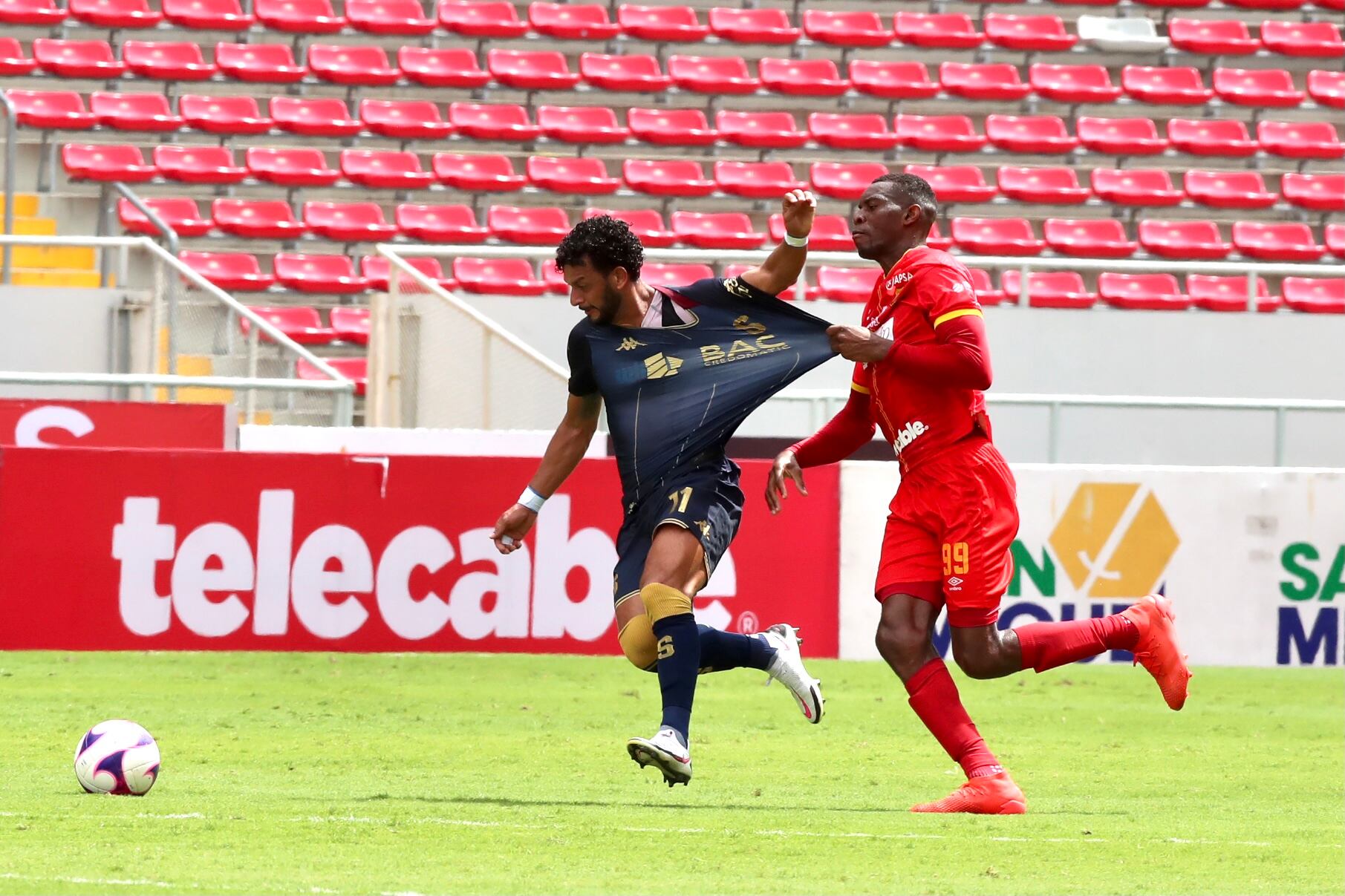 Ante el empate, el Monstruo también se espabiló con un par de llegadas peligrosas, un tiro libre de Johan Venegas, al 36, que tapó Bryan Segura y en el rebote Robinson tampoco pudo con el meta.