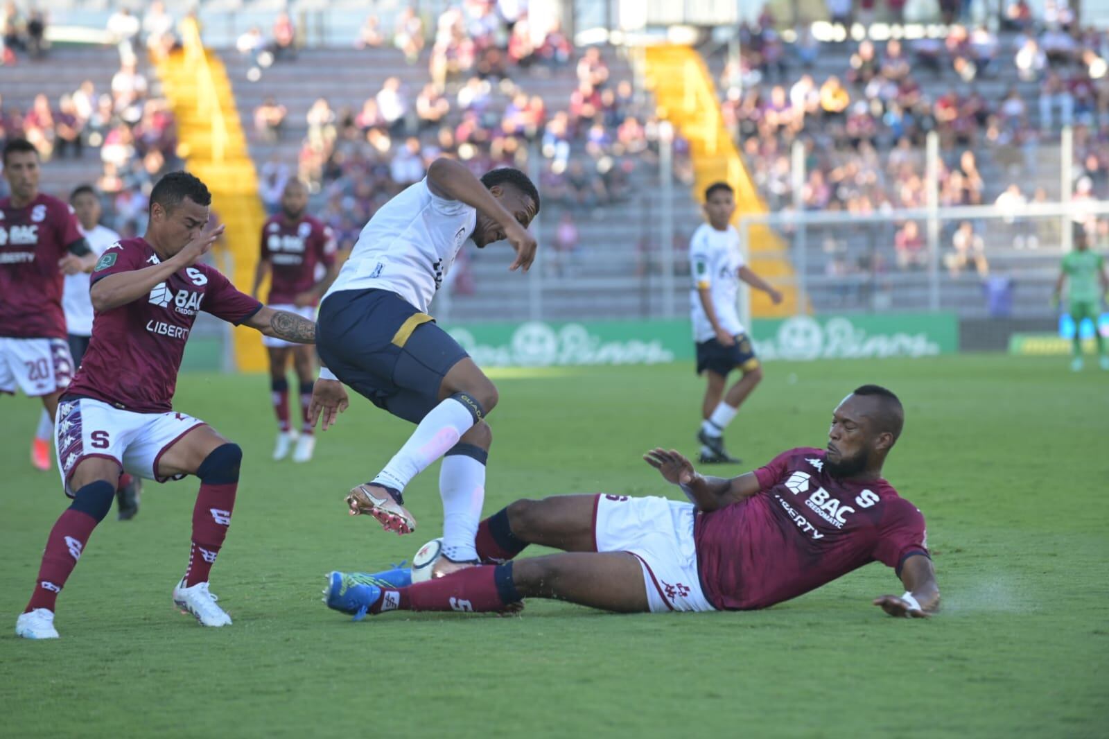 Kendall Waston, el arma predilecta de Saprissa en las alturas sufrió un doble marcaje de dos hombres altos (no tanto como él) y recios y no sufrieron con el espigado defensor y en esa dinámica transcurrió el primer tiempo que terminó con ventaja de los visitantes.