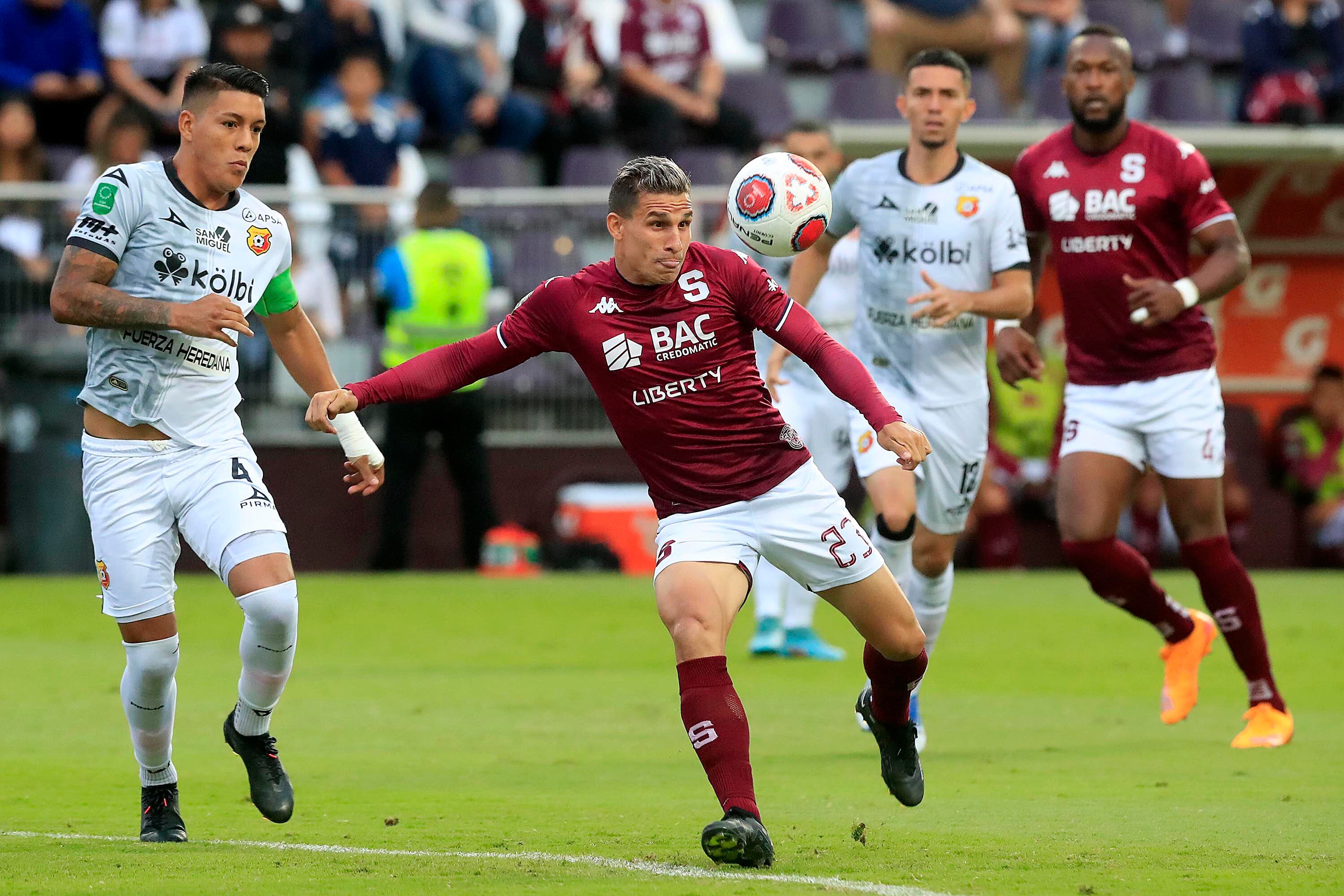 Saprissa ha sido mejor equipo y desde los diez segundos intentó sorprender con una jugada que siempre hacen. Sacar hacia atrás, en esta ocasión a Pablo Arboine, el pelotazo al frente donde va encarrerado Waston y la peina hacia atrás. Luis Paradela controló de pecho y le dio de media vuelta pero Alvarado tapó el remate.