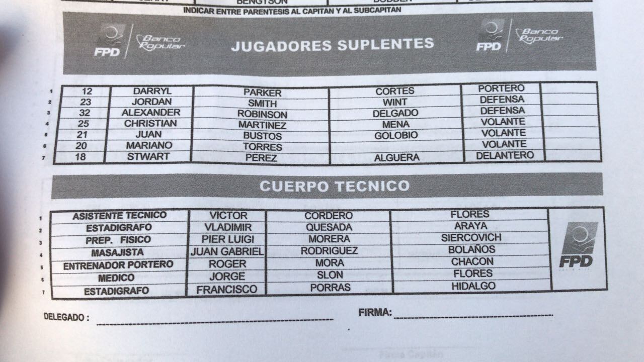 En la lista oficial que entregaron los morados con la alineación, no tienen espacio para técnico y Quesada aparece como estadígrafo, al igual que José Francisco Porras, quien lleva rato en ese puesto.