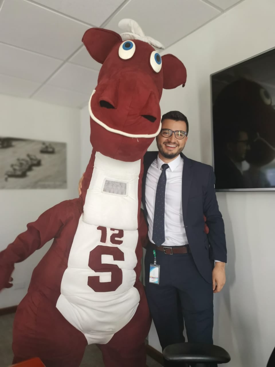 En la institución lo reconocen como una persona muy colaboradora, por lo que cuando le presentaron la idea no lo pensó mucho y cuando se dio cuenta ya estaba en la cancha con sus característicos bailes.