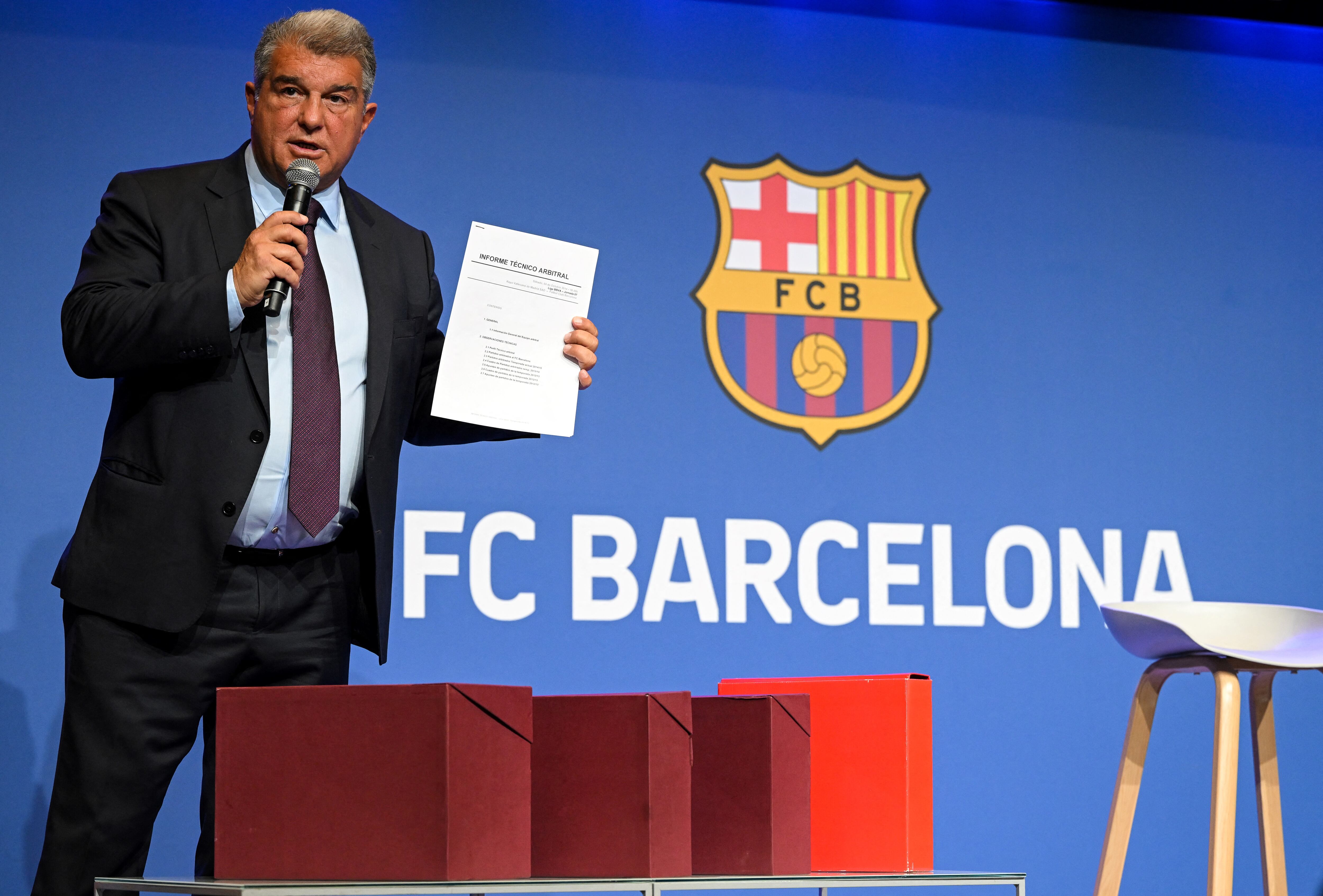 El equipo azulgrana “no ha realizado jamás ninguna actuación que tuviese como objetivo final o como intención alterar la competición para conseguir algún tipo de ventaja deportiva”, afirmó Laporta.