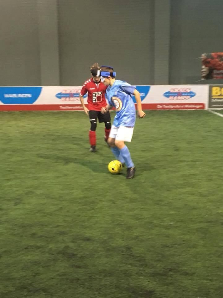 Para jugar al fútbol no vidente, se colocan vallas a los lados para que la pecosa no salga y con el sonido de la bola y los rebotes los jugadores logran ubicarse dentro de la cancha.