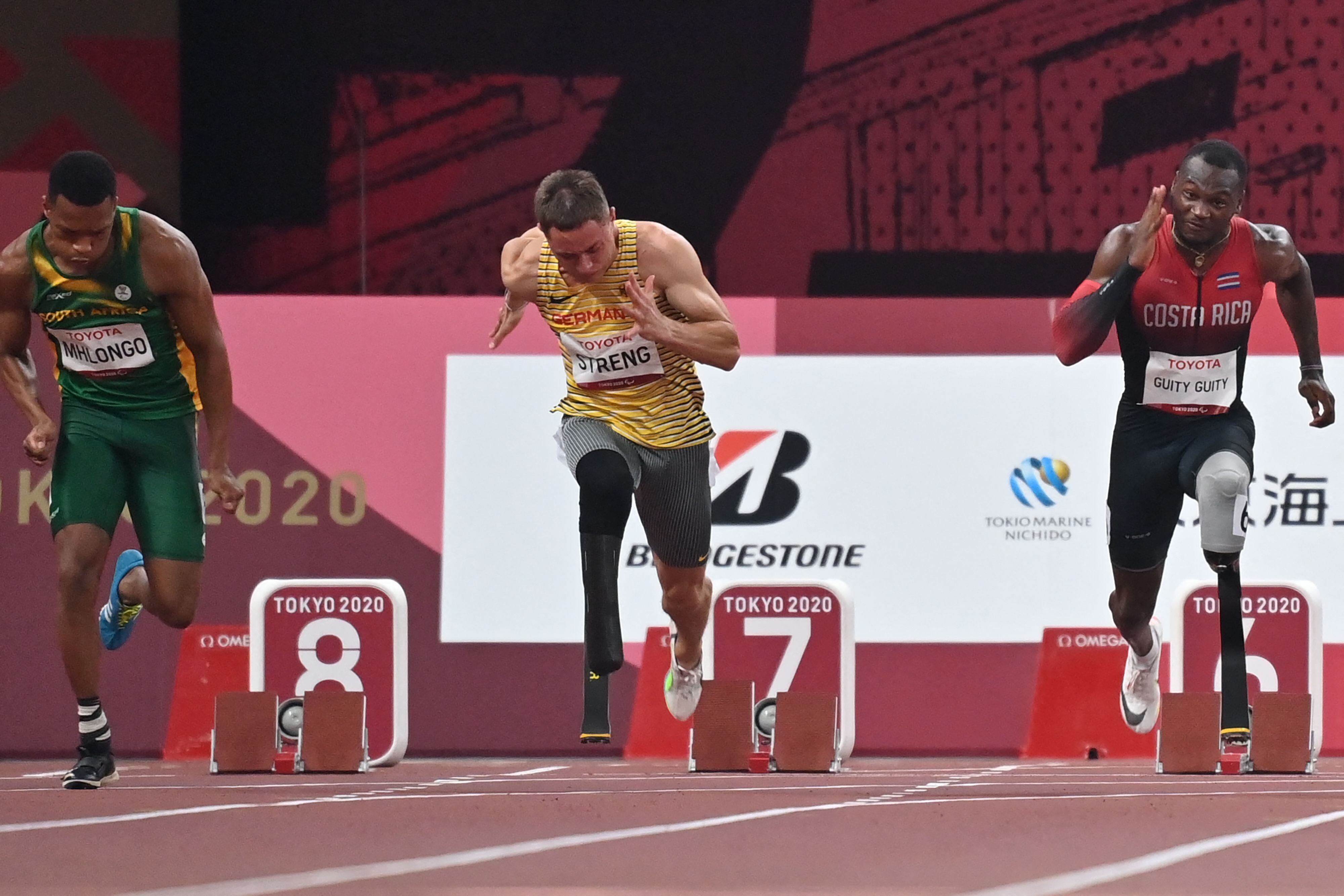El tico salió a pista a eso de las 8:34 de la noche de este viernes. Se ubicó en el tercer carril y enfrentó en su competencia a los paratletas Arz Zahreddine de Líbano, Jonathan Gore de Estados Unidos, Levi Vloet de Holanda y Jarryd Wallace, también de Estados Unidos.