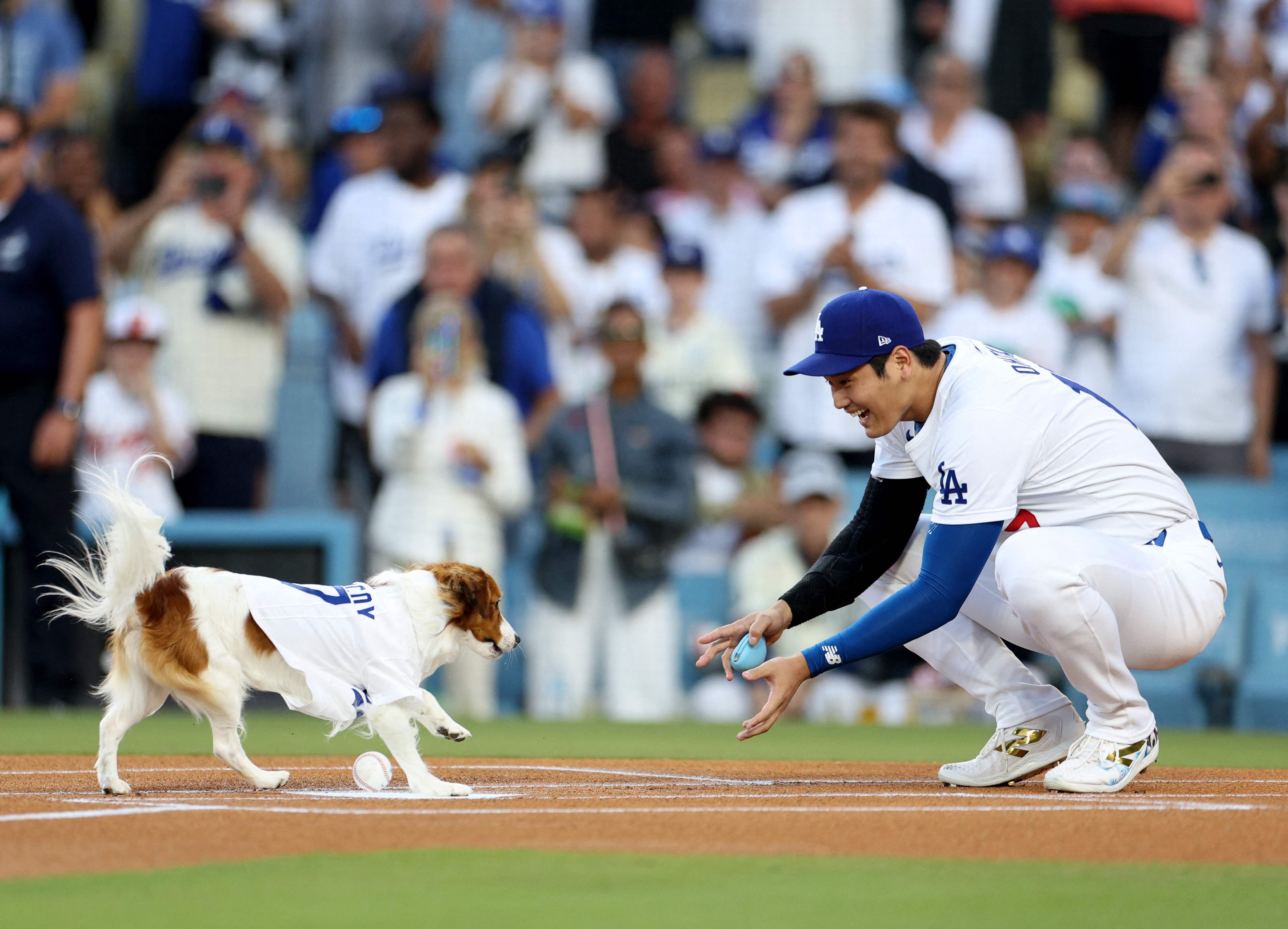 Sin duda, el lanzamiento de la primera pelota en el juego de este miércoles entre los Dodgers y los Orioles, es uno de los más lindos y conmovedores en la historia de las Grandes Ligas y fue protagonizado por Shohei Ohtani y su famoso perrito, Decoy.