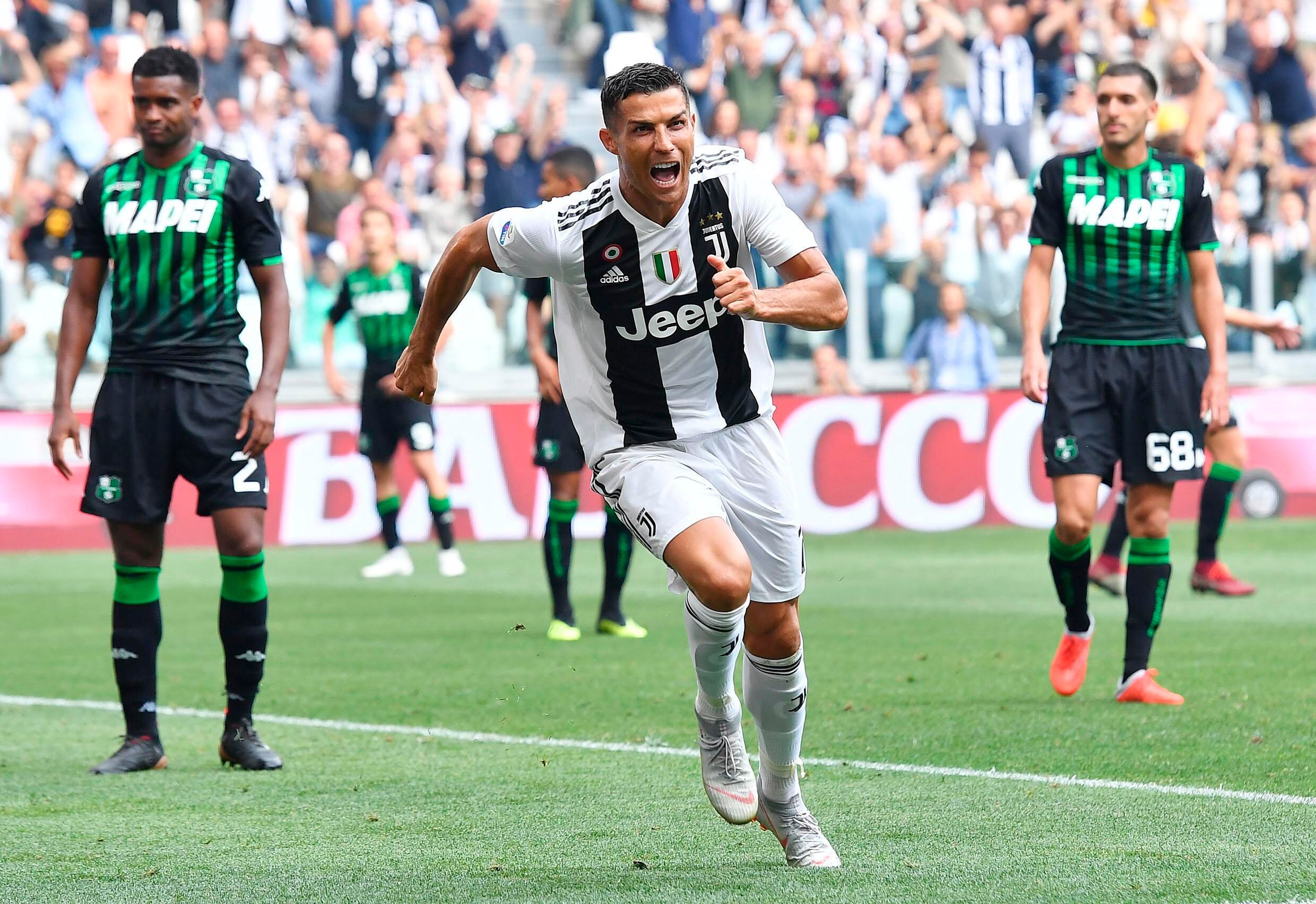 El portugués Cristiano Ronaldo, cinco veces ganador del Balón de Oro, anotó los dos goles que dieron el triunfo a la Juventus 2-1, este domingo contra el Sassuolo.