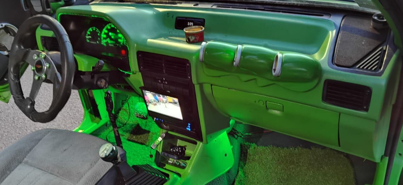 Adentro le hice una modificación de luces y al estéreo. Acá en Limón hay un muchacho, Henry Johnson, que hace esos carros tipo discomóvil, algo que le quiero hacer más adelante. Espero que el otro año pueda tenerle esa modificación.