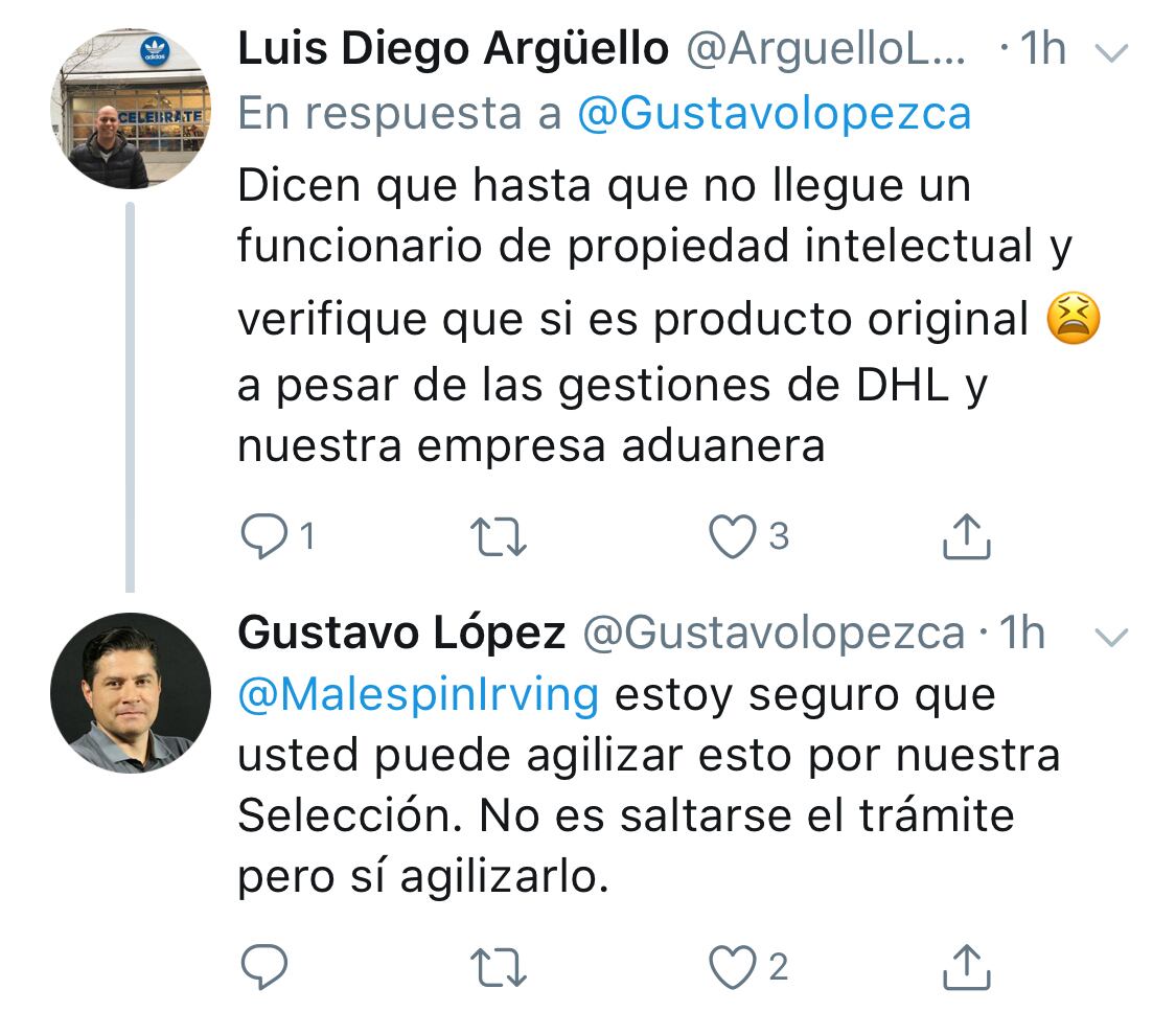“Cuestionaron la originalidad del producto enviado por Adidas Global a nosotros. Tantas copias y falsificaciones y nos ponen traba a nosotros”, escribió Argüello en el pedido de “auxilio” que hizo mediante su cuenta de Twitter.