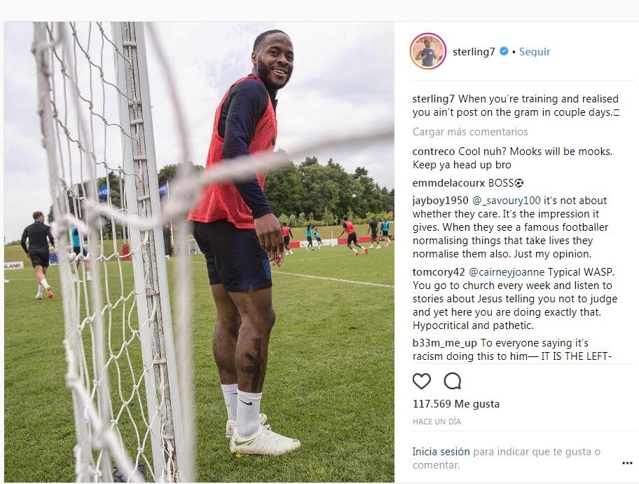 Raheem Sterling, estrella del Mánchester City y de la selección de Inglaterra,se vio obligado a defender su nuevo tatuaje de un rifle de asalto M16, que le está trayendo tantos problemas porque un sector de la afición y de la prensa está pidiendo que lo echen inmdiatmente del equipo patrio por incitar a la violencia y motivar las armas.