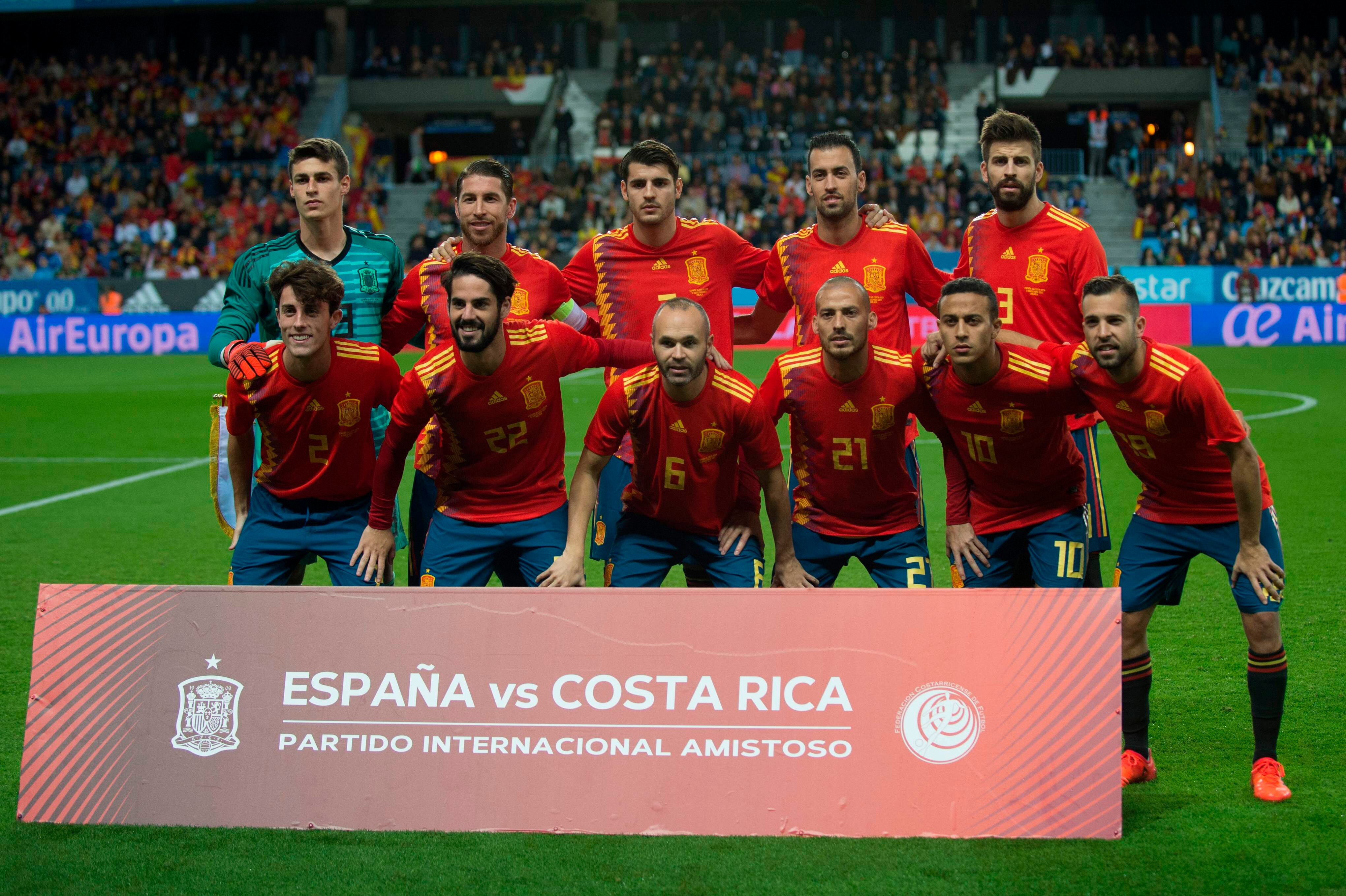 El plantel tiene seis jugadores del Real Madrid y cuatro del Barcelona. Los del Madrid se reportarán a los entrenamientos más tarde que el resto porque jugarán la final de la Liga de Campeones contra el Liverpool, este sábado, en Kiev, Ucrania.