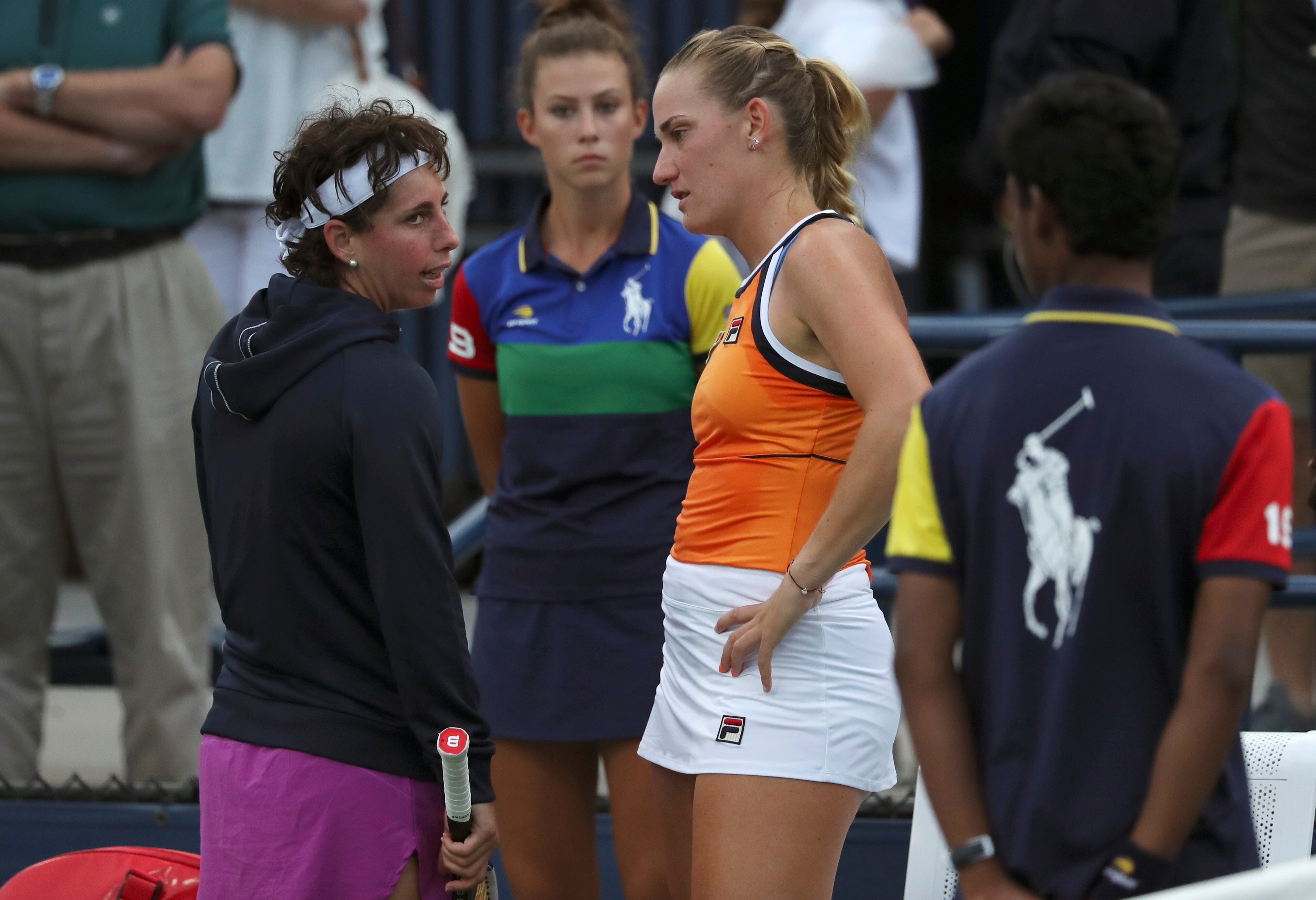 Pero el juez principal del torneo, Soeren Friemel, dijo que la española, quien puede apelar la decisión, “no rindió de acuerdo a los estándares profesionales requeridos del torneo”. Por eso se le sancionó por quebrantar una regla para los partidos de primera ronda.