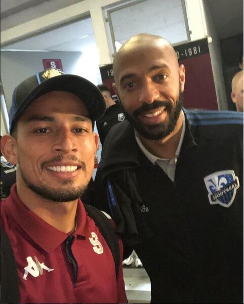 Los jugadores morados no se aguantaron las ganas de tomarse una foto con el campeón del mundo y Europa Thierry Henry.