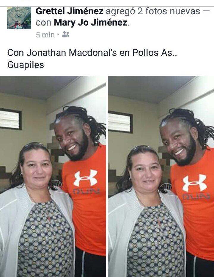 La mujer publicó una foto en su cuenta personal de Facebook donde sale con el goleador Víctor “Mambo” Núñez, sin embargo, en el texto que acompaña la imagen asegura estar con el atacante de Alajuelense Jonathan McDonald.