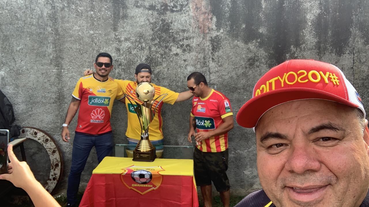 Ya lo sabe, si anda por Heredia, no se extrañe si se encuentra al directivo rojiamarillo con el trofeo, más bien si puede aproveche y acérquese, al rato se lleva todo un recuerdazo del título 28 florense.