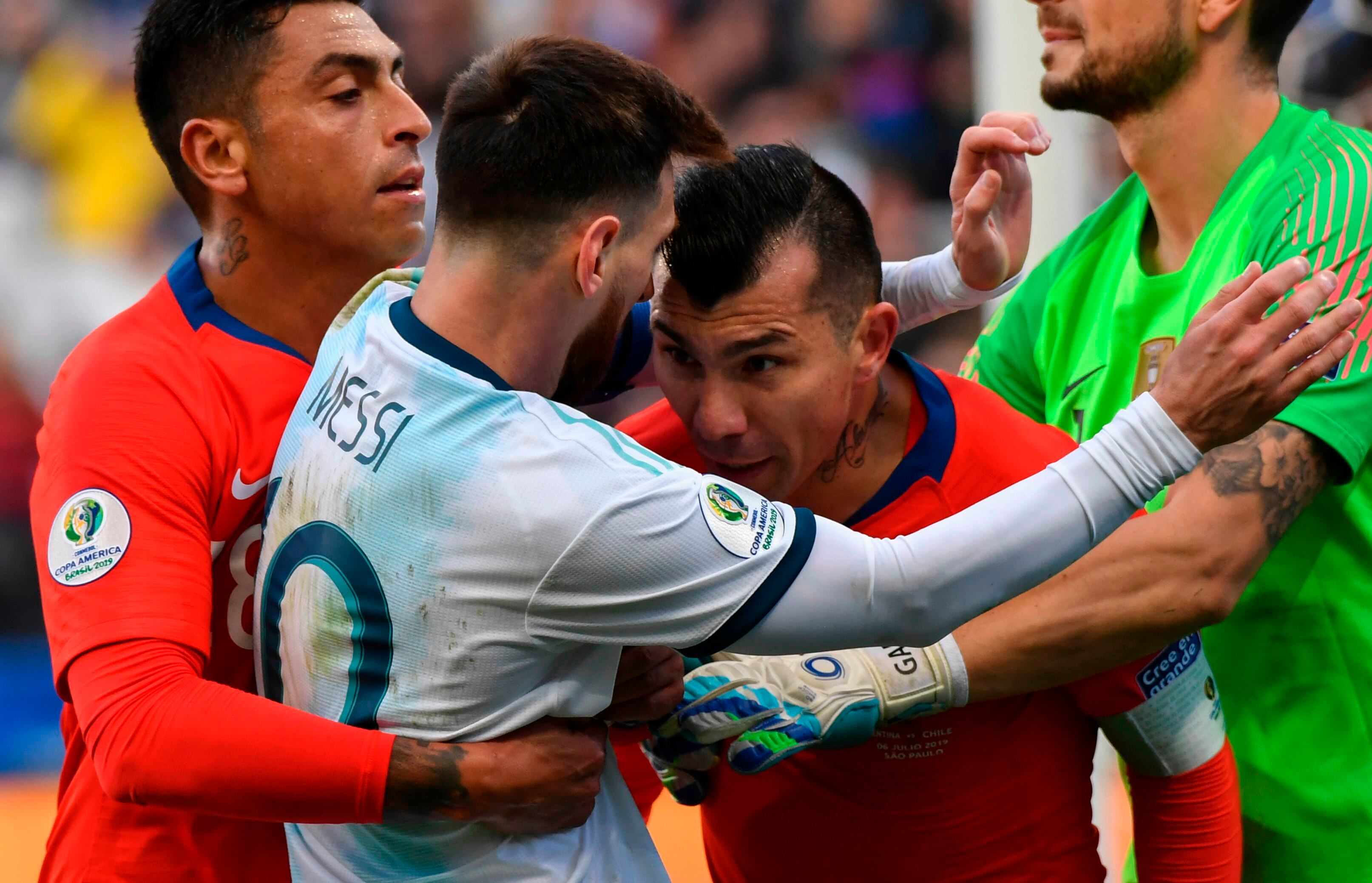 Se rumora un fuerte castigo de la Conmebol hacia la Pulga, que además fue expulsado en el juego del sábado anterior contra Chile, por enfrentarse a pechazos con Gary Medel.