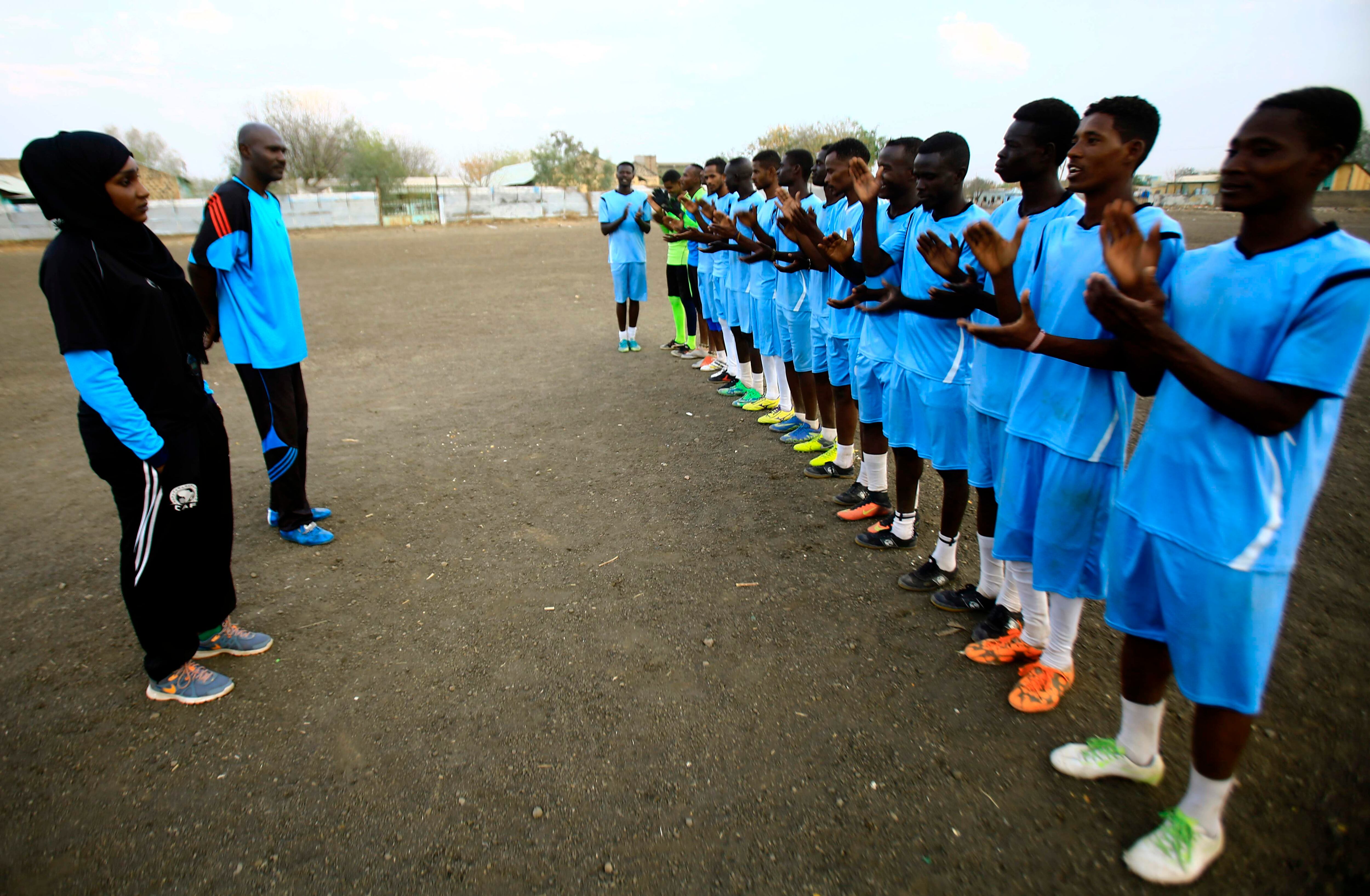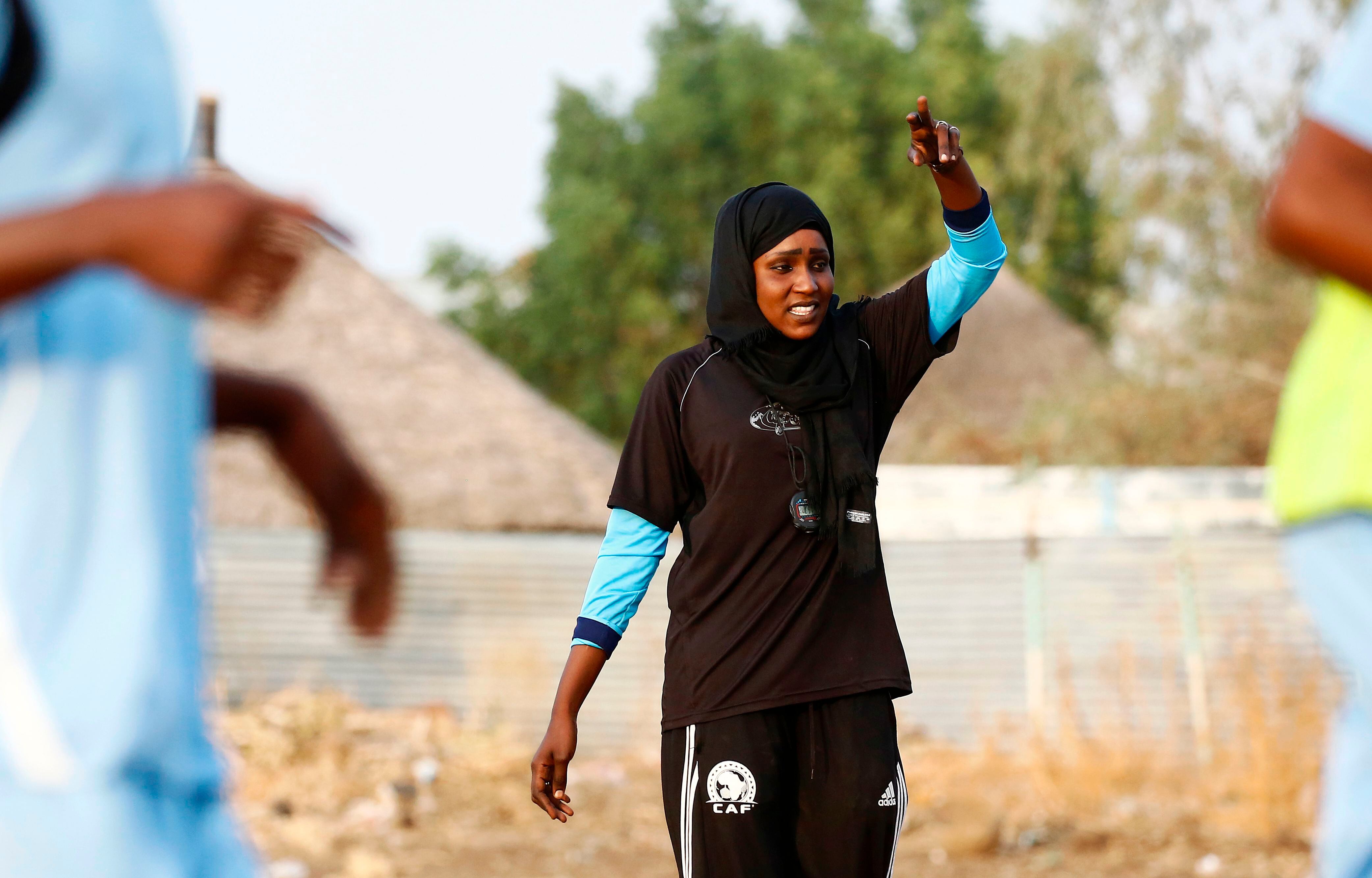 “Me hice entrenadora porque todavía no hay espacio para el fútbol femenino en Sudán”, explica la joven mujer, apodada de manera afectuosa “hermana entrenadora” por su equipo.