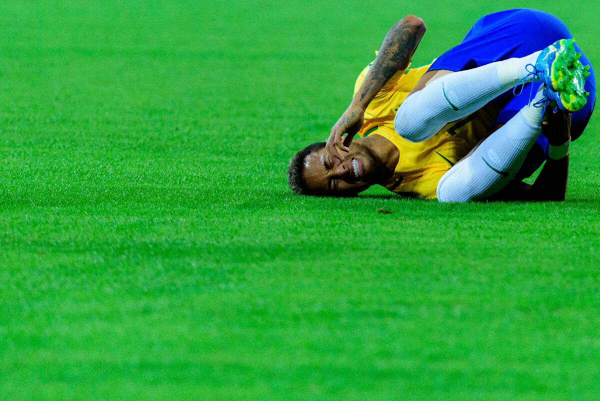 Según cálculos realizados por una televisora suiza, Neymar pasó más de 14 minutos en el piso lesionado o simulando una lesión durante los cinco partidos de Brasil en el Mundial de Rusia, a veces revolcándose reiteradamente antes de frenarse.