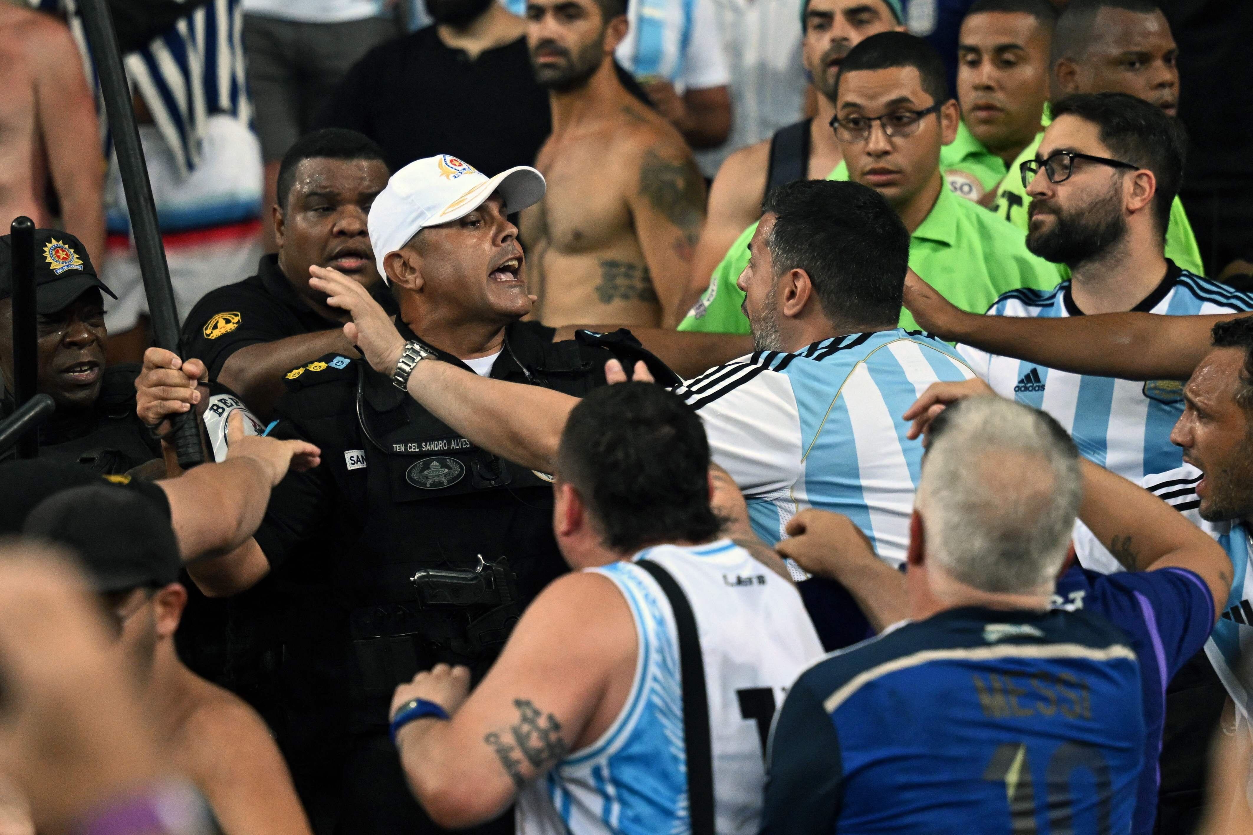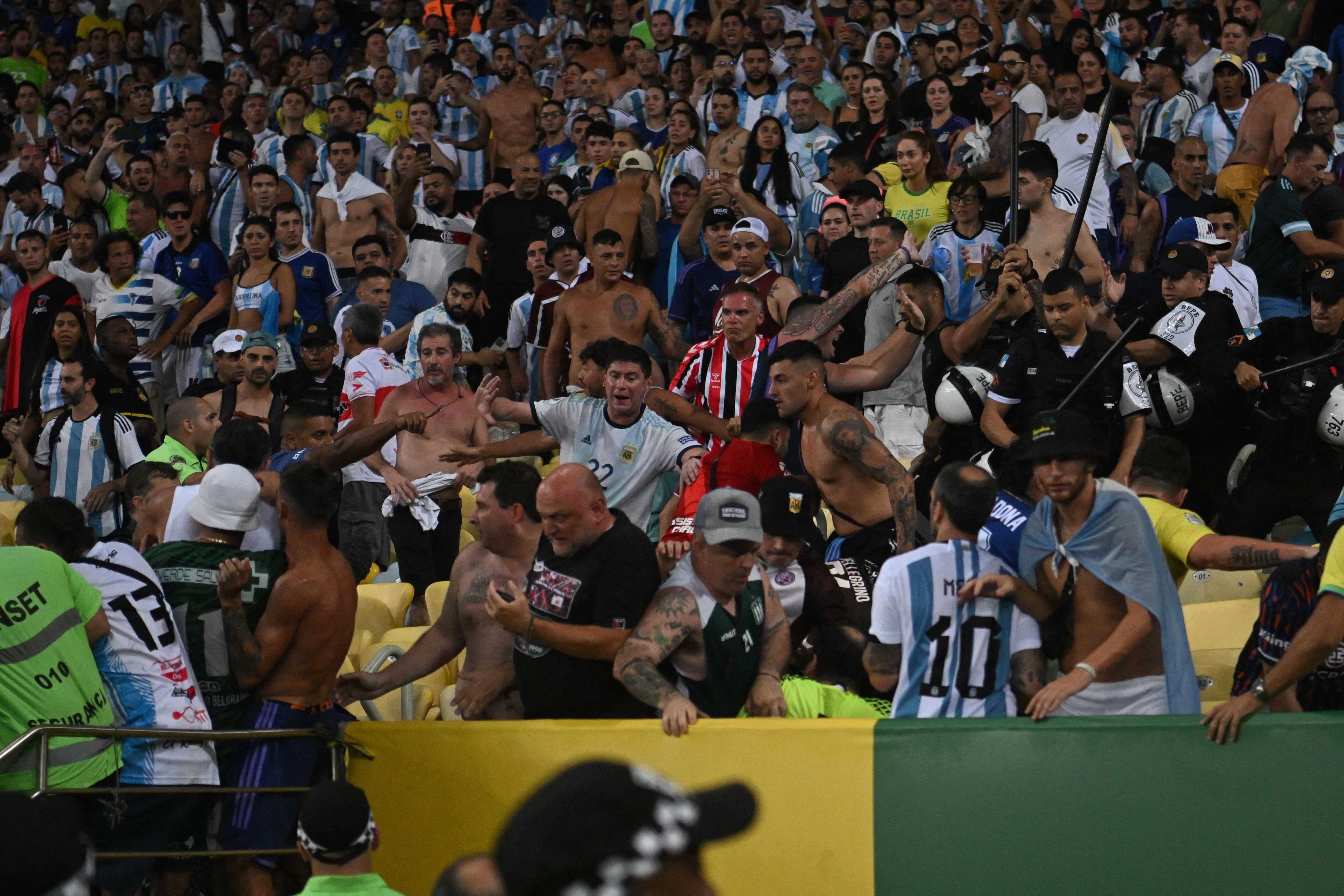 Las gradas del estadio Maracaná en Río de Janeiro, Brasil, fueron el campo para una batalla campal momentos antes que arrancara el partido que disputaría la selección local ante Argentina en una edición más del clásico sudamericano rumbo al mundial de Norteamérica 2026.