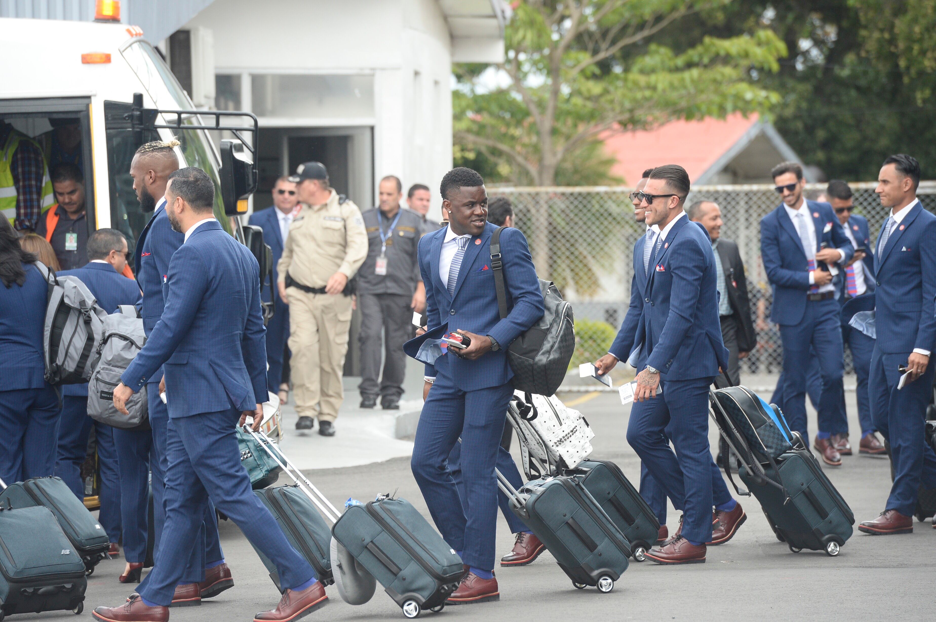 Los futbolistas llegaron al aeropuerto Internacional Juan Santamaría al mediodía, bien chaneados con traje entero de medio millón de colones cada uno, entraron por Base Dos y a la 1 de la tarde tomaron el vuelo de Copa Airlines rumbo a Panamá.