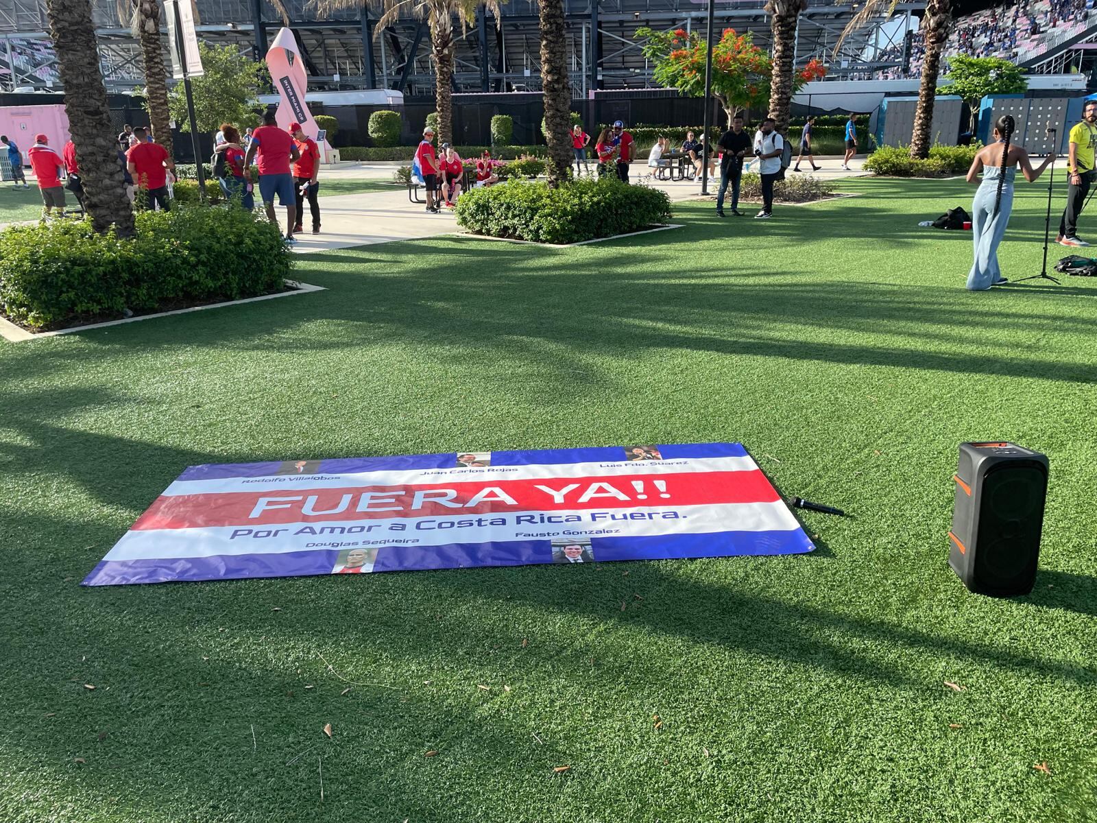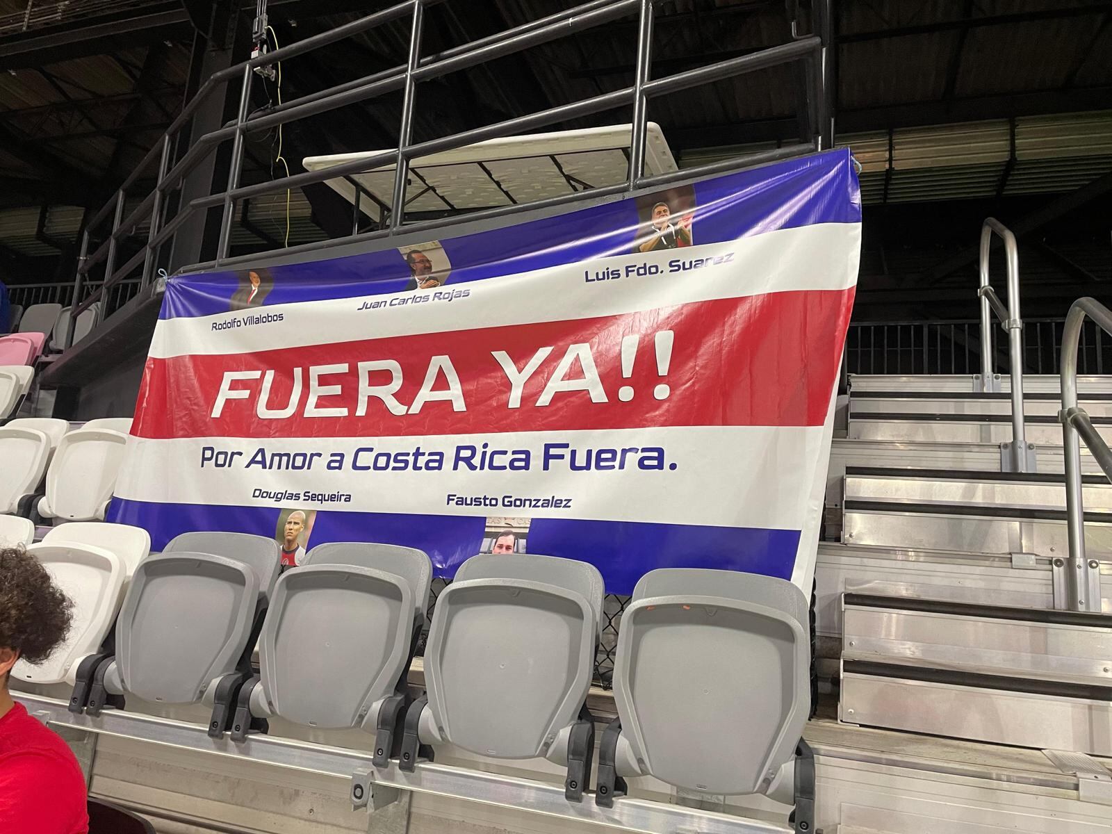 “¡FUERA YA! Por amor a Costa Rica, fuera”, decía la bandera que lució adentro del estuche, una muestra más del descontento que existe en la afición.