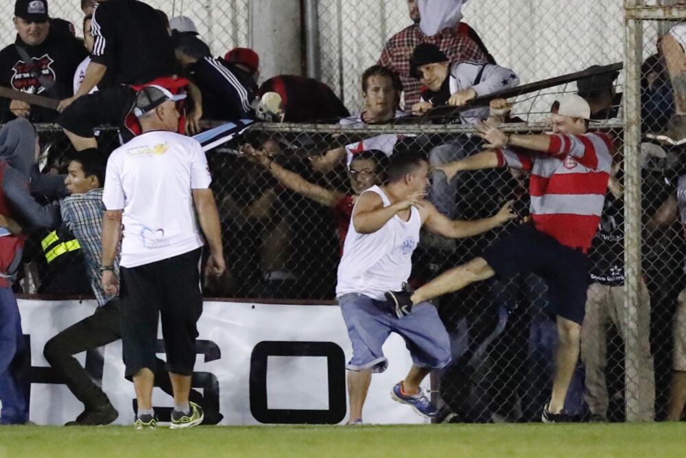 El partido estaba 1-0 a favor de Santa Ana cuando, aparentemente, una discusión entre un dirigente santaneño y un miembro del cuerpo técnico local encendió la mecha del pleito.