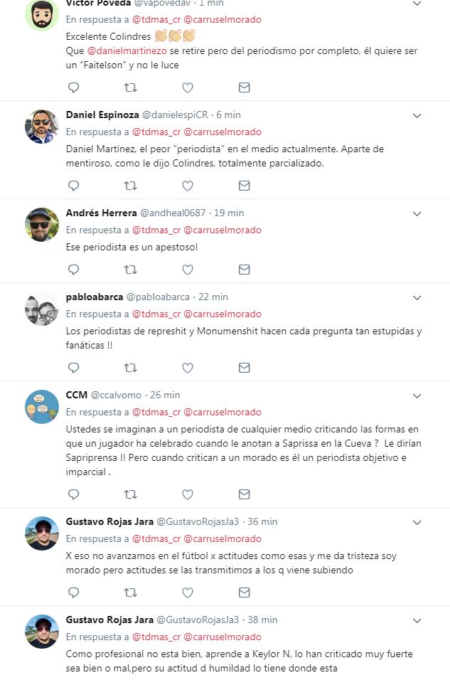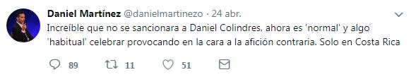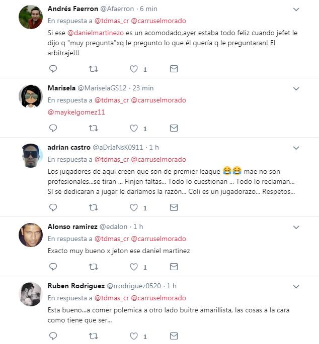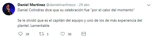 Semanas atrás Martínez realizó una serie de tuits donde manifestaba que al morado se le debía sancionar por “provocar” a la afición contraria al celebrar un gol, palabras que no fueron del agrado del jugador, quien le dijo que debía “hablar con verdades”.