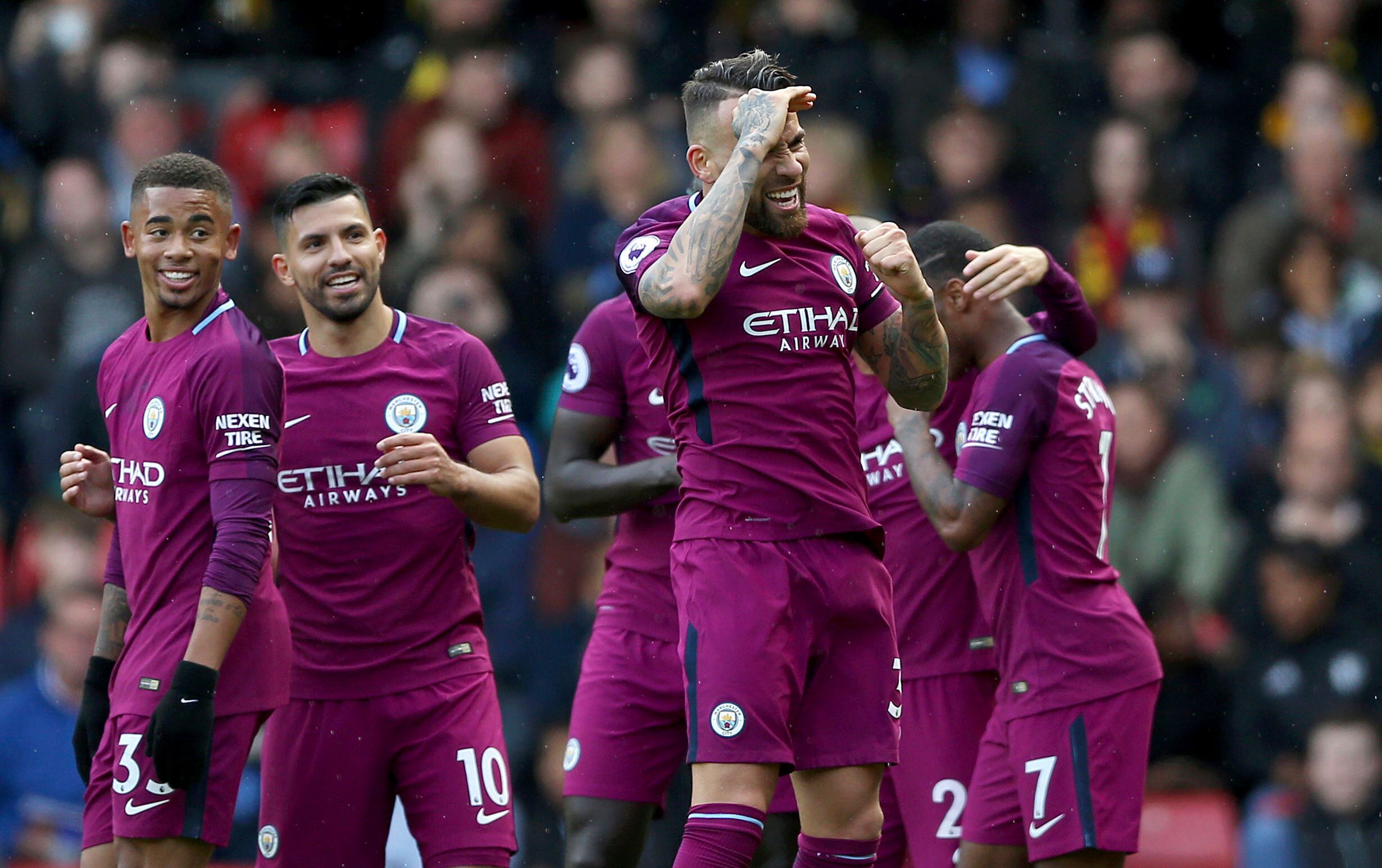 En Watford, Sergio Agüero abrió el vacilón de su club, con un remate de cabeza tras una falta lanzada por el belga Kevin de Bruyne, cuando se jugaban 27 minutos.