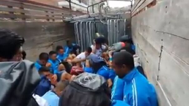 La persona que grabó el video en el que se ve a jugadores y árbitros en el camión, informó que el hecho fue una estrategia planeada por la policía nacional que se hizo presente en el estadio. Además, iban acompañados por encargados de seguridad.