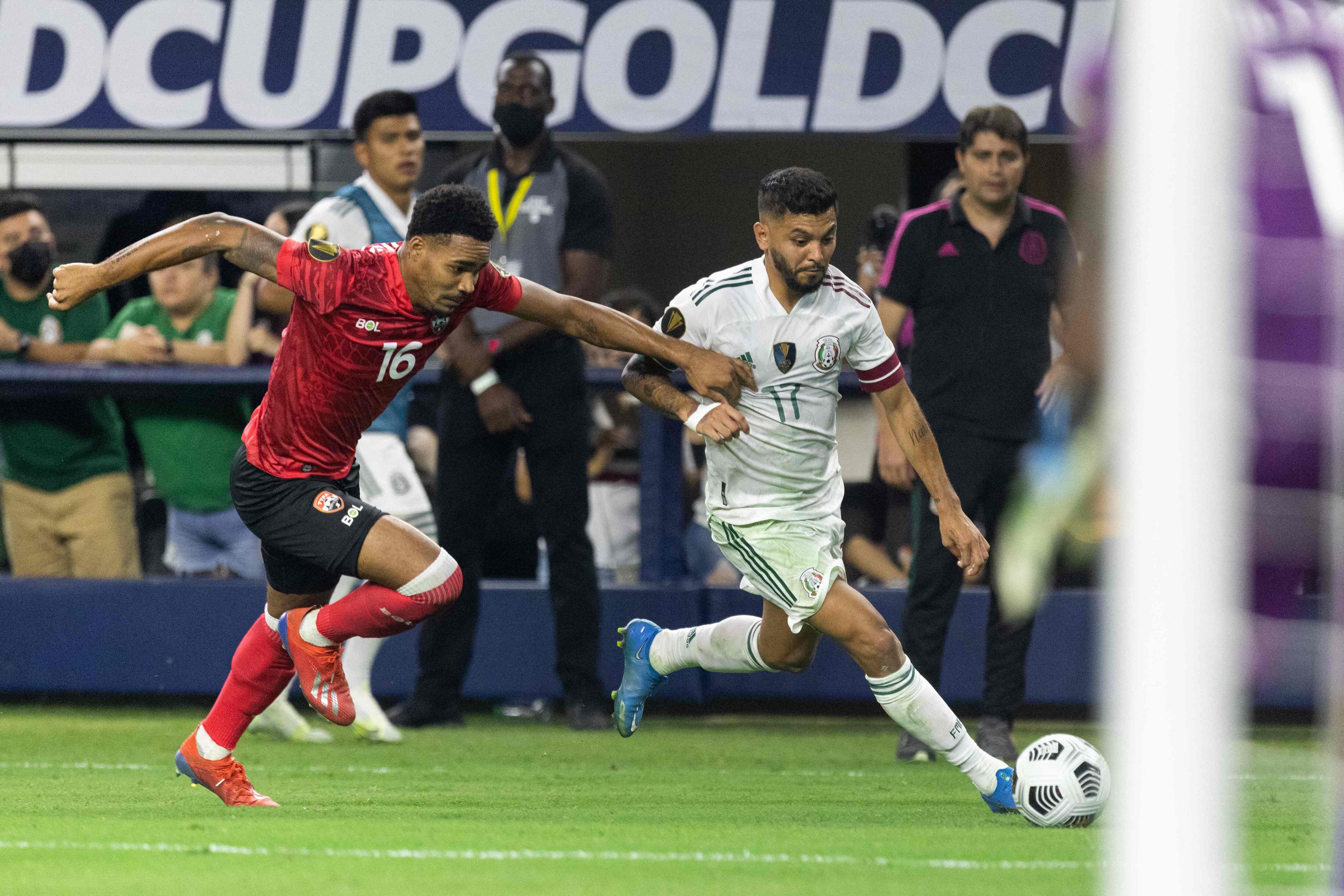 Luego de recibir un empujón dentro del área, Lozano pegó su rostro contra la rodilla del guardameta de Trinidad y Tobago, Marvin Phillips y quedó noqueado en el césped durante varios minutos.