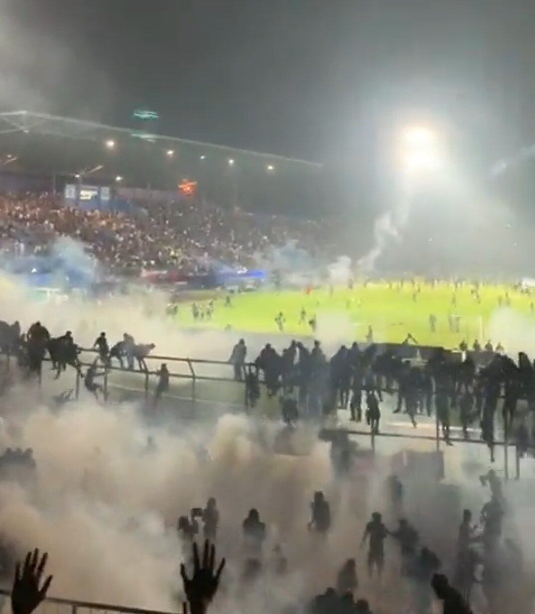 La bronca cayó cuando la afición del Arema FC, en el distrito de Malang, se tiró a la cancha después de que su equipo perdiera ante el Persebaya Surayaba, en el estadio Kanjuruhan, en Java Oriental. La Policía intentó, sin éxito, aplacar al público con gas lacrimógeno.