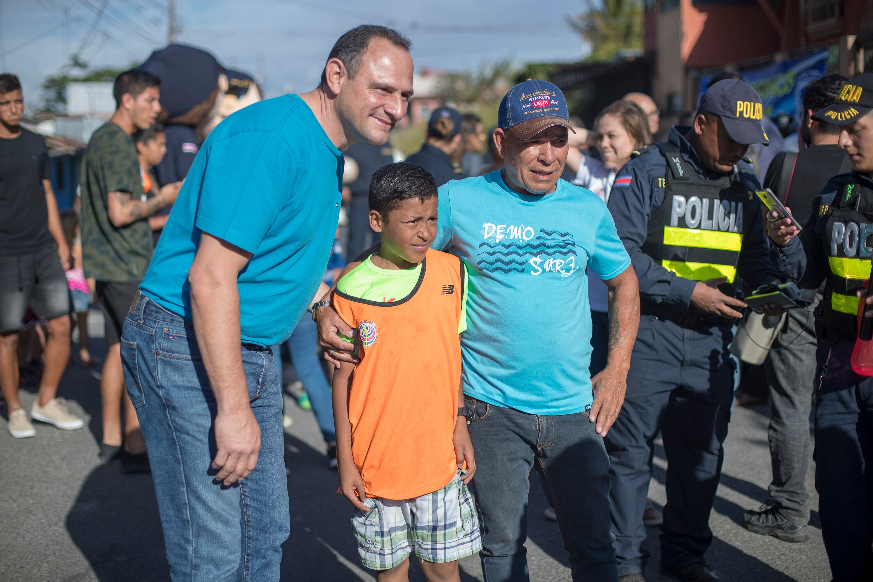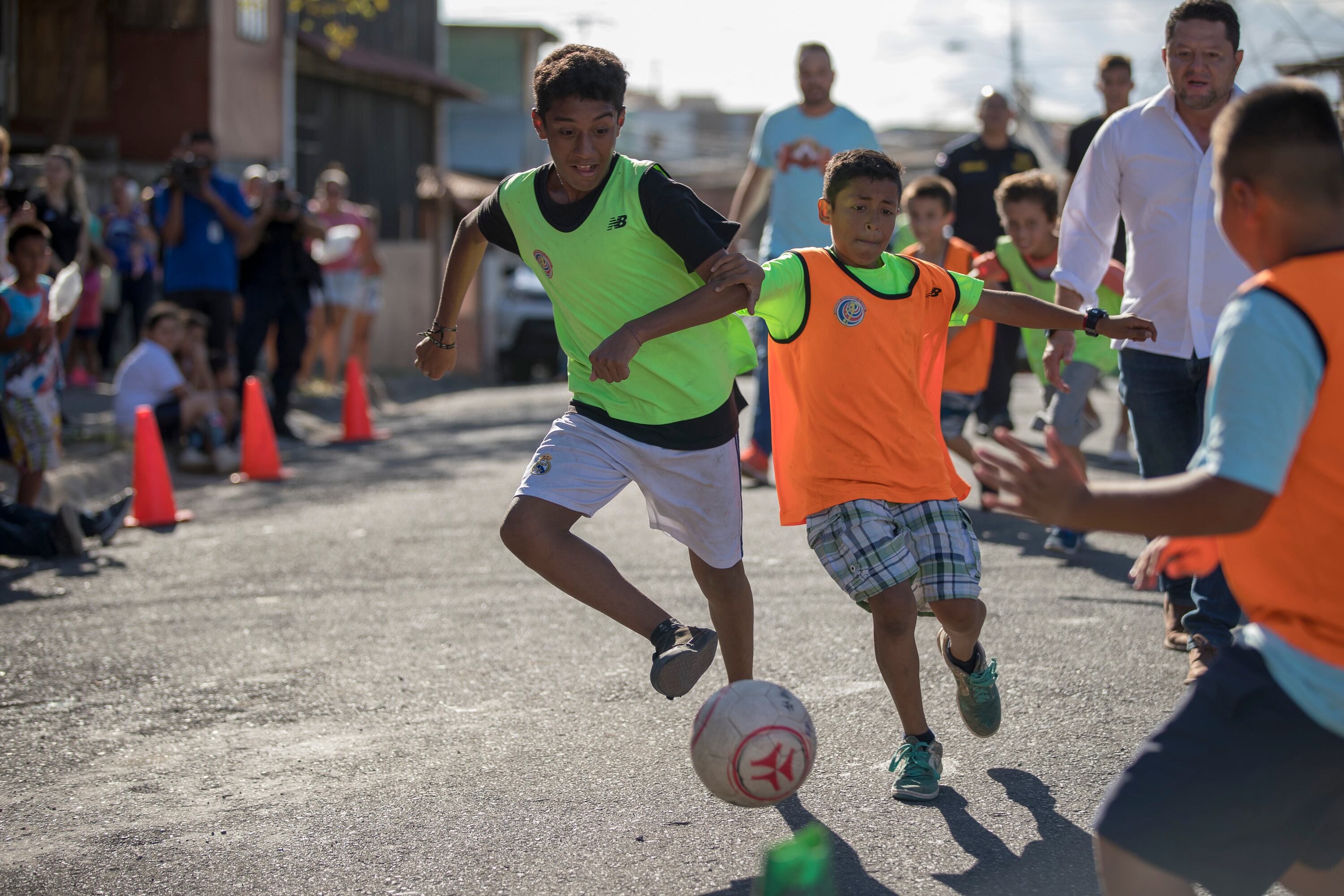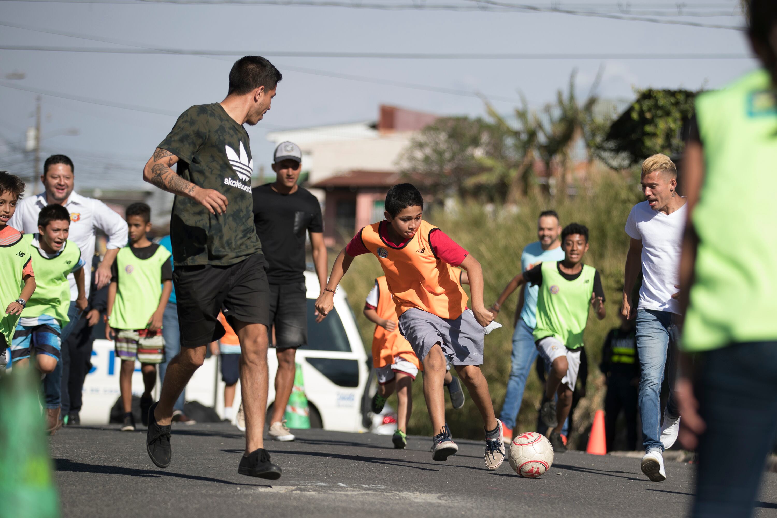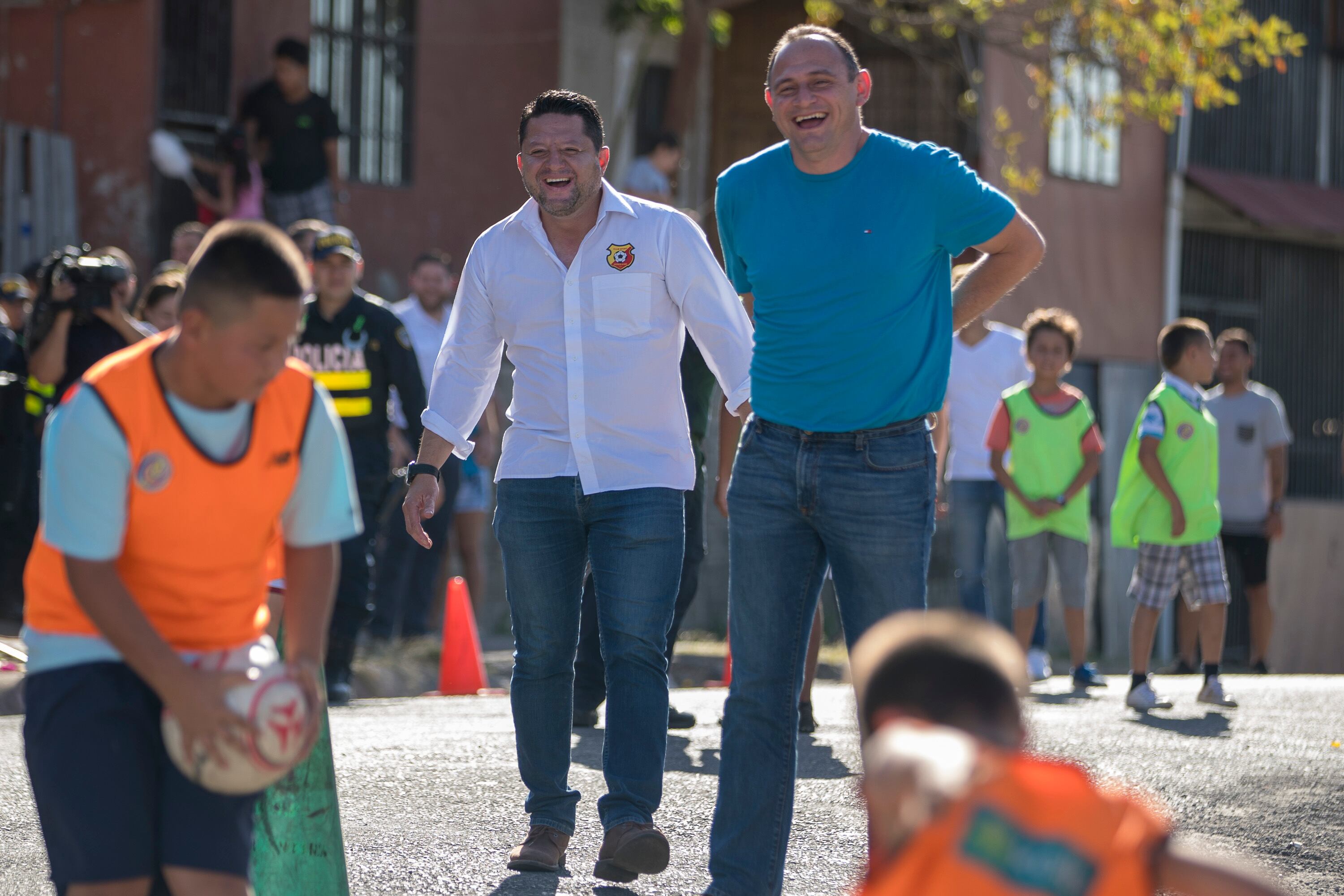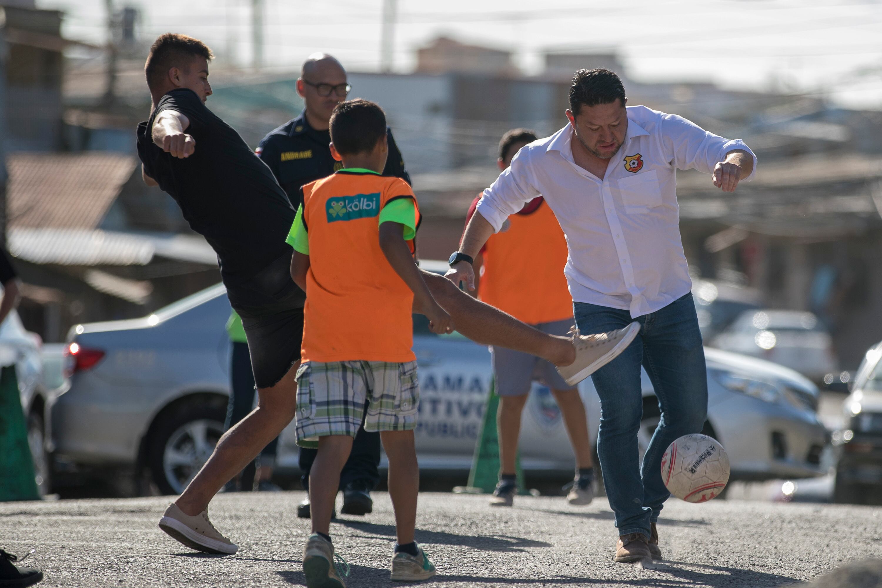 "La verdadera mejenga de los chiquitos en este barrio es contra la droga, la violencia y la indiferencia, es un partido que juegan todos los días. Queremos generar una acción preventiva y que los niños se apropien de estos espacios y traerles modelos positivos y vean personas exitosas", destacó Juan José Andrade, viceministro de Seguridad Pública, quien también se tiró a mejenguear con todo y uniforme.