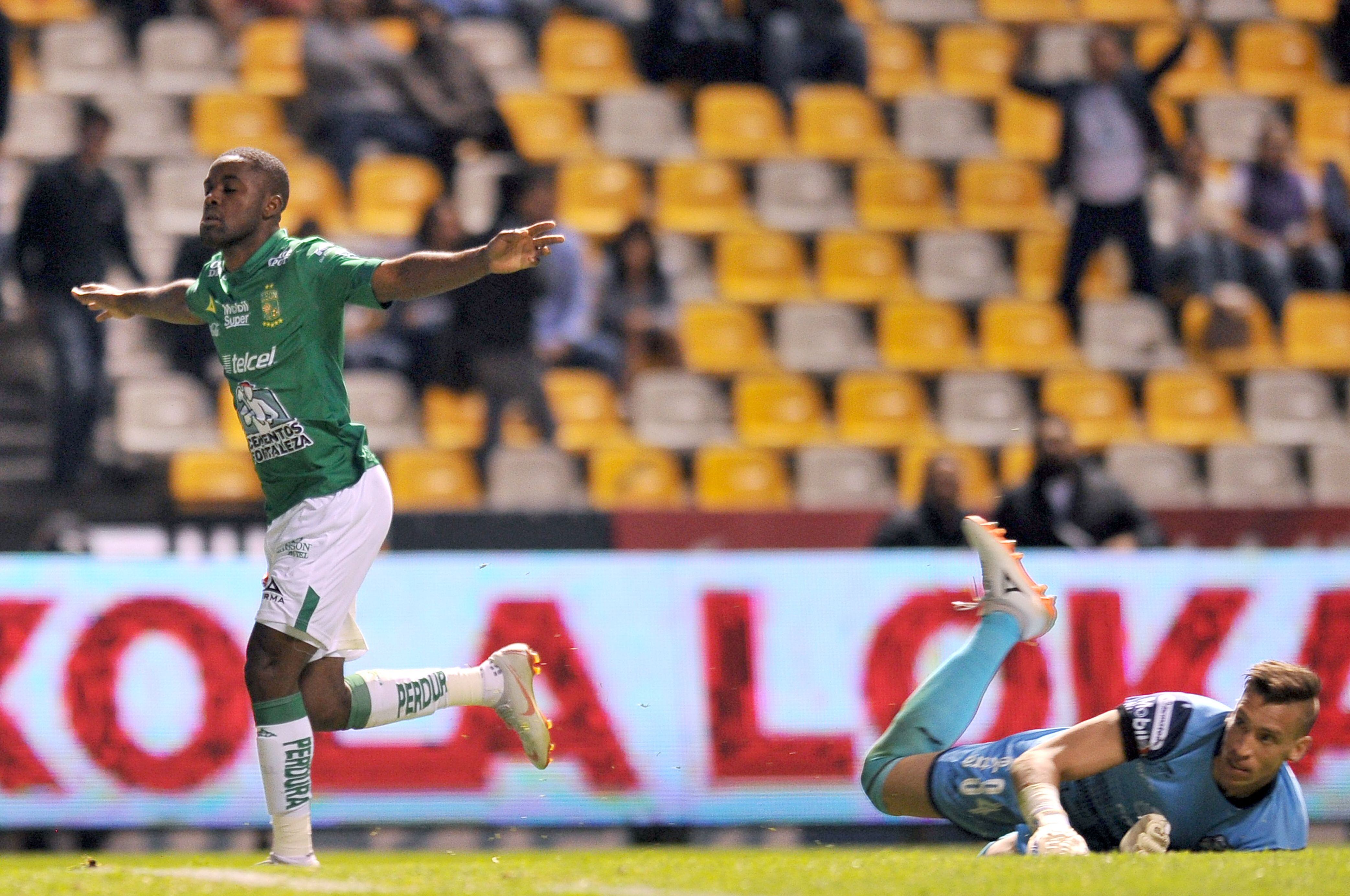 Joel Campbell celebró este sábado su segundo gol con el León en la Liga MX de México.