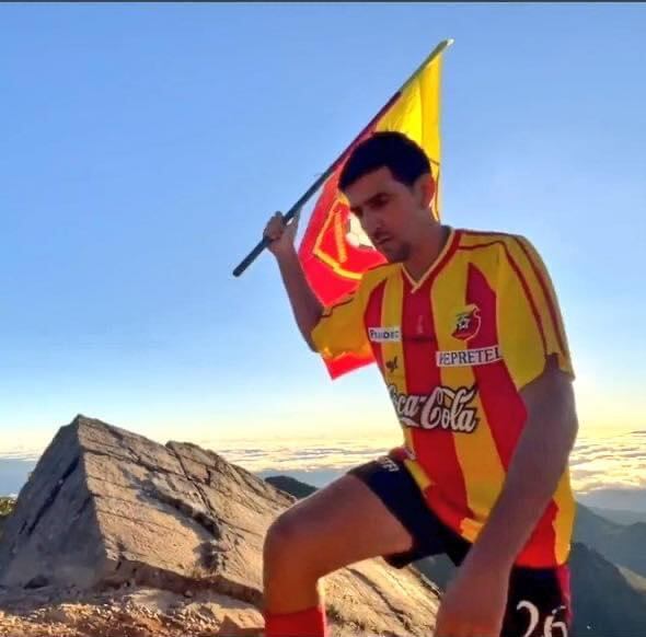 El exjugador herediano Leonardo González se vistió de Eladio Rosabal Cordero, el legendario jugador florense, para llevar la bandera de la institución al punto más alto del país, el cerro Chirripó.