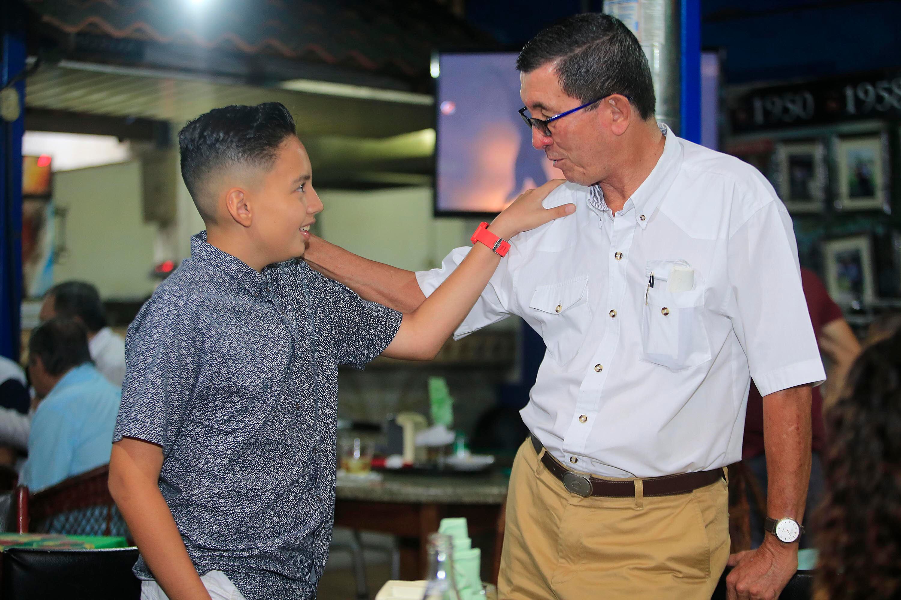 Las primeras veces, el chico, que está en la escuela de Pueblo Nuevo, hizo el programa desde la Casa del Pollo Papi, 100 metros oeste de los tribunales de justicia en Alajuela, pero el jueves pasado se estrenó en el Jardín Cevichero Mexicano en San Sebastián, donde conoció a su famoso dueño, Eduardo “Pescado” Herrera.