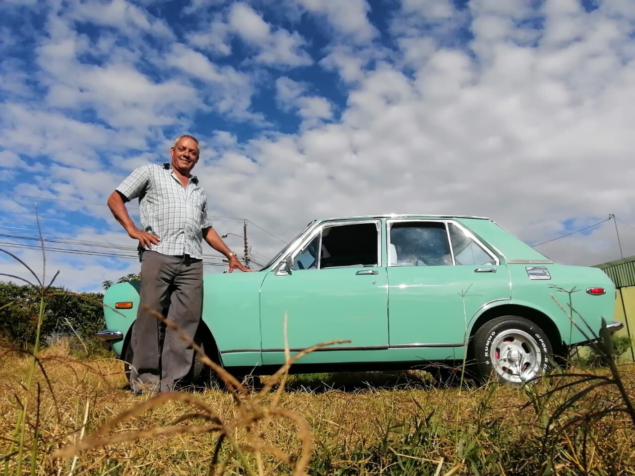 Repollito es el nombre ideal para este chuzo y así bautizó don Javier Trejos Díaz a su Datsun 120-A, modelo 1970, motor 1000, para cinco personas y de un llamativo verde marino.
