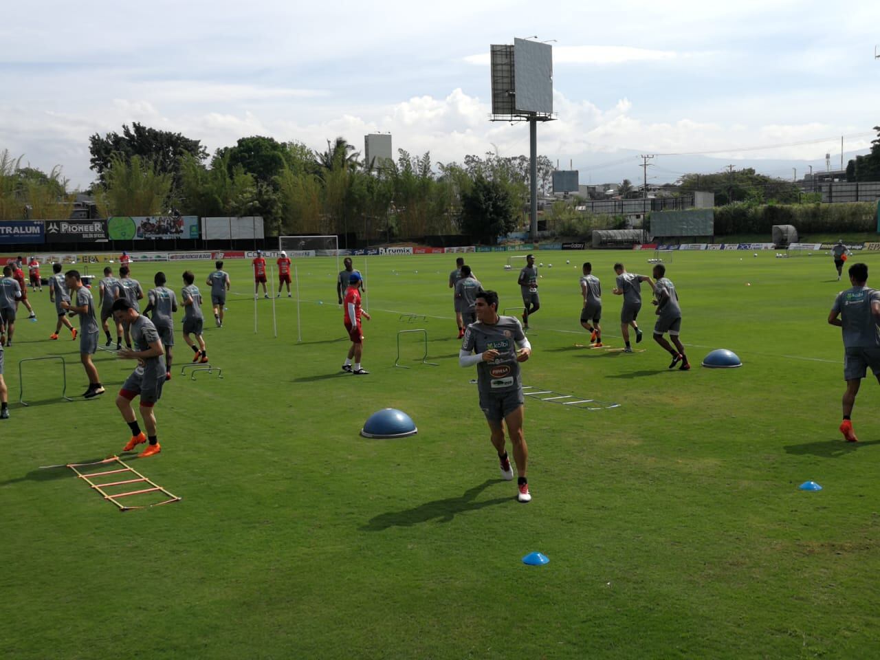 Este martes trabajaron Óscar Duarte, Bryan Oviedo, Patrick Pemberton y Johnny Acosta, quienes iniciaron con unos trabajos físicos y después un poco de táctica con el Macho.